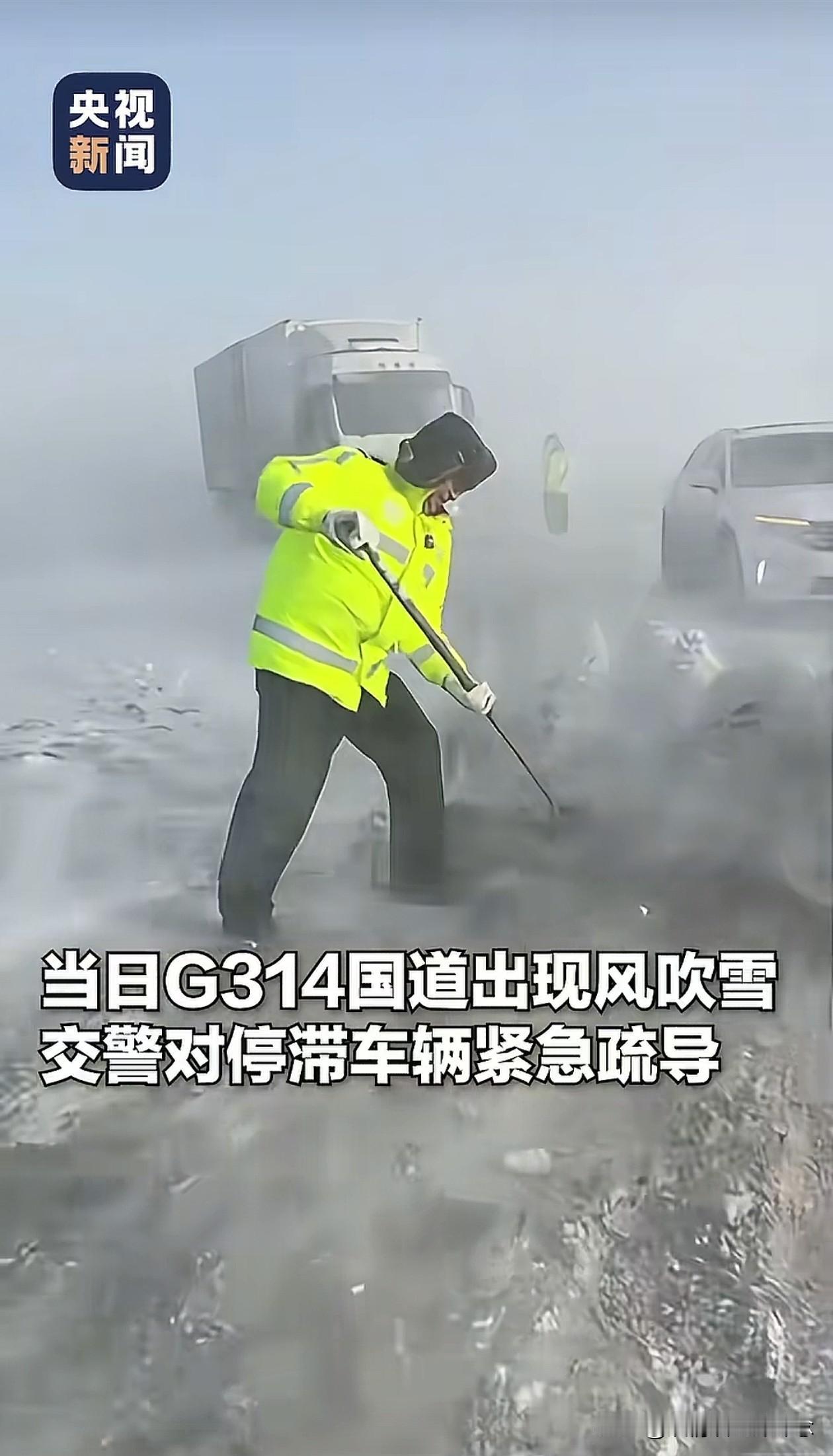 心疼!请记住这张被风雪冻住的脸, 今日乌鲁木齐大雪, 交警冒着风雪在G314国道上对滞留的车辆紧急疏导,结果自己变成“冰人”。 12月12日,乌鲁木齐经历了一次强寒潮,天气非常寒冷,大风➕大雪,最低气温到达了零下15℃。314国道上的交警冒着如此恶劣的天气,提醒路过车辆“打开双闪,谨慎驾驶”,为滞留车辆提供救援。 看着这张被冻住的脸,不由得心疼,这是谁的父亲,又是谁的儿子,我们不知道他的名字,却记得他睫毛上凝结的冰碴,记得他冻得通红的鼻尖与嘴唇。 愿风雪早些停歇,愿他能早日脱下冰甲,喝上一杯热饮,早点休息;也愿每一个为生活奔波的人,都能被这样的善意守护。 新疆下雪天气