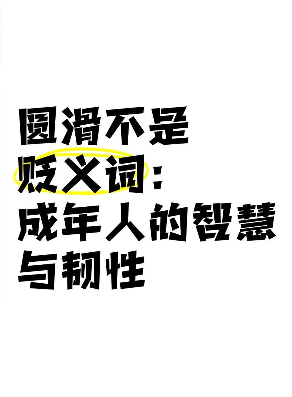 生活的剧本由你书写✍️“圆滑”并非贬义词……🟣变圆滑并不可怕,那是成长的必然。但只要不是伤天害理、不是泯灭人性,适当的圆滑世故,也是为了更好地生活,更坦然自在地前进。🟣过于刚直的性格,在职场生涯中注定会吃亏。为人处事“圆滑”的人,往往能撑得起场面,规避祸事。在所有的人和事面前,都能游刃有余,这样的本领,可不是人人都能拥有的。往后余生,愿你成为一个心地善良,且处事圆滑的人。圆滑而不失原则!