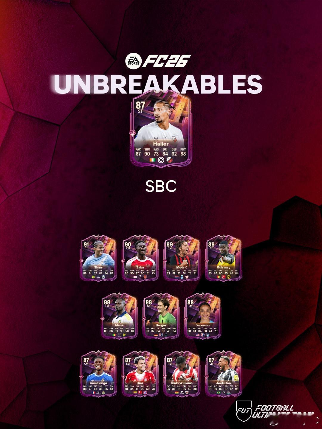 12月13日新增SBC:• 坚不可摧挑战 1• 83+ TOTW 升级• Sébastien Haller• Clint Dempsey• 英超十一月最佳球员FC26