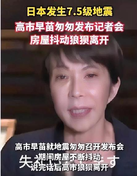 地震人怒日本最近可真不太平! 我突然递给日方两个不寻常信号! 高市脸上那股“铁”劲儿绷不住了! 明显能看出慌了神。12月8日晚上,日本本州青森县附近海域突然发生7.5级强震,消息传出来后,高市早苗急匆匆就冲进了首相官邸,脸上全是吓着的样子,这一下,她一直装的“铁娘子”形象可有点撑不住了。 让她心里更静不下来的,是熊猫的两个举动:一个是暂时停运了代表中日友好的“鉴真号”航线,另一个是暂时关闭了中日防务热线。这两个动作明摆着是对准日本最近那些不太合适的政策——尤其是日本军机频繁去挑衅,还有说些涉及台湾的不当话,熊猫这是在给他们提个醒。 熊猫的回应做得既冷静又到位,用了能调整的方式给日本社会传了个清楚的意思:要是还一直挑衅,就得承担更严重的后果。高市早苗之前一直坚持的强硬做法,现在遇到了很棘手的考验,日本国内的一些系统问题也一下子暴露出来了。 在这场国家间的外交较量里,熊猫表现出很稳的战略耐心,用最小的代价达到了最大的警示效果。现在日本那边的舆论已经有点慌了,高市早苗以后的政治路可能会变得不确定。你觉得这次日本会不会真的调整对熊猫相关的政策呢?