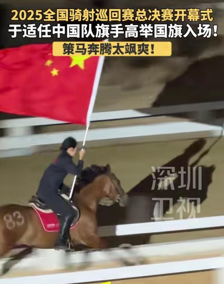 太帅了太帅了! 12月12日2025全国骑射巡回赛总决赛开幕式上,于适担任中国队旗手,他高举国旗那策马奔腾的样子简直太飒爽、太帅了吧!只见他身姿挺拔,稳稳地握着国旗,骏马如风般在赛场上驰骋,这画面直接刻进我DNA里了。 感觉他就像从古代穿越而来的英勇骑士,带着满满的气势和荣耀。有这样的旗手,中国队必须赢麻了!希望中国队在这次比赛中一路披荆斩棘,勇夺冠军!一起为中国队加油呀!