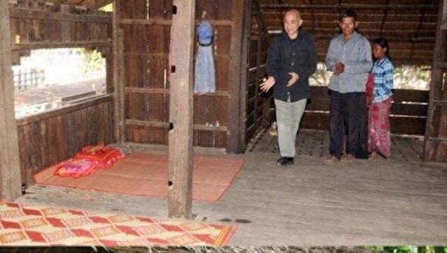 柬埔寨国王一生未婚,看他打扮也是朴素无华的样子。他到那些穷苦人家去,茅草房还蛮有观赏性的。