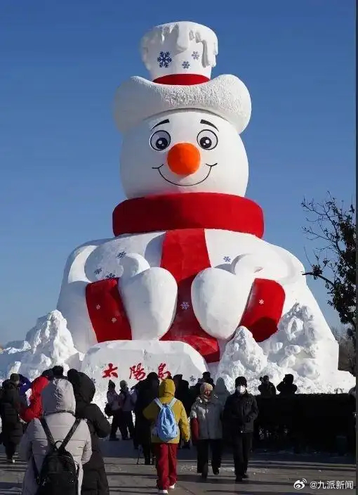 #哈尔滨雪人先生用雪量5000立方米#【#对话哈尔滨雪人先生设计师#:高度、用雪量创纪录,50名工匠4天雕成】近日,哈尔滨第38届太阳岛雪雕艺术博览会(以下简称“雪博会”)的标志性雪塑景观“雪人先生”正式收工,在太阳岛风景区惊艳亮相。今年的“雪人先生”延续了去年大雪人的形象,以经典红色礼帽搭配红围巾、八字眉加微笑眼的憨态造型、双手竖起大拇指的点赞手势重新回归,还将雪雕的高度提至23.8米,寓意“爱撒向八方”,吸引了网友的广泛关注,迅速成为游客的新晋打卡地。12月11日,负责设计“雪人先生”的雪雕艺术设计师张宁阁向介绍,今年“雪人先生”用雪量达5000立方米,创历史新高,为了能在最短的时间内回应游客的期待,平均每天都有近50名工匠参与切割、打磨、雕刻,仅用4天就完成了雕刻。“看到喜欢雪人先生的人这么多,大家的反响这么好,我心里很有成就感。现在雪雕一年比一年做得好,一年比一年出精品,作为设计者我觉得责任重大,所以也在勉励自己要不断地研究和探索,力求创新、设计出更受大家欢迎的作品。”他说。