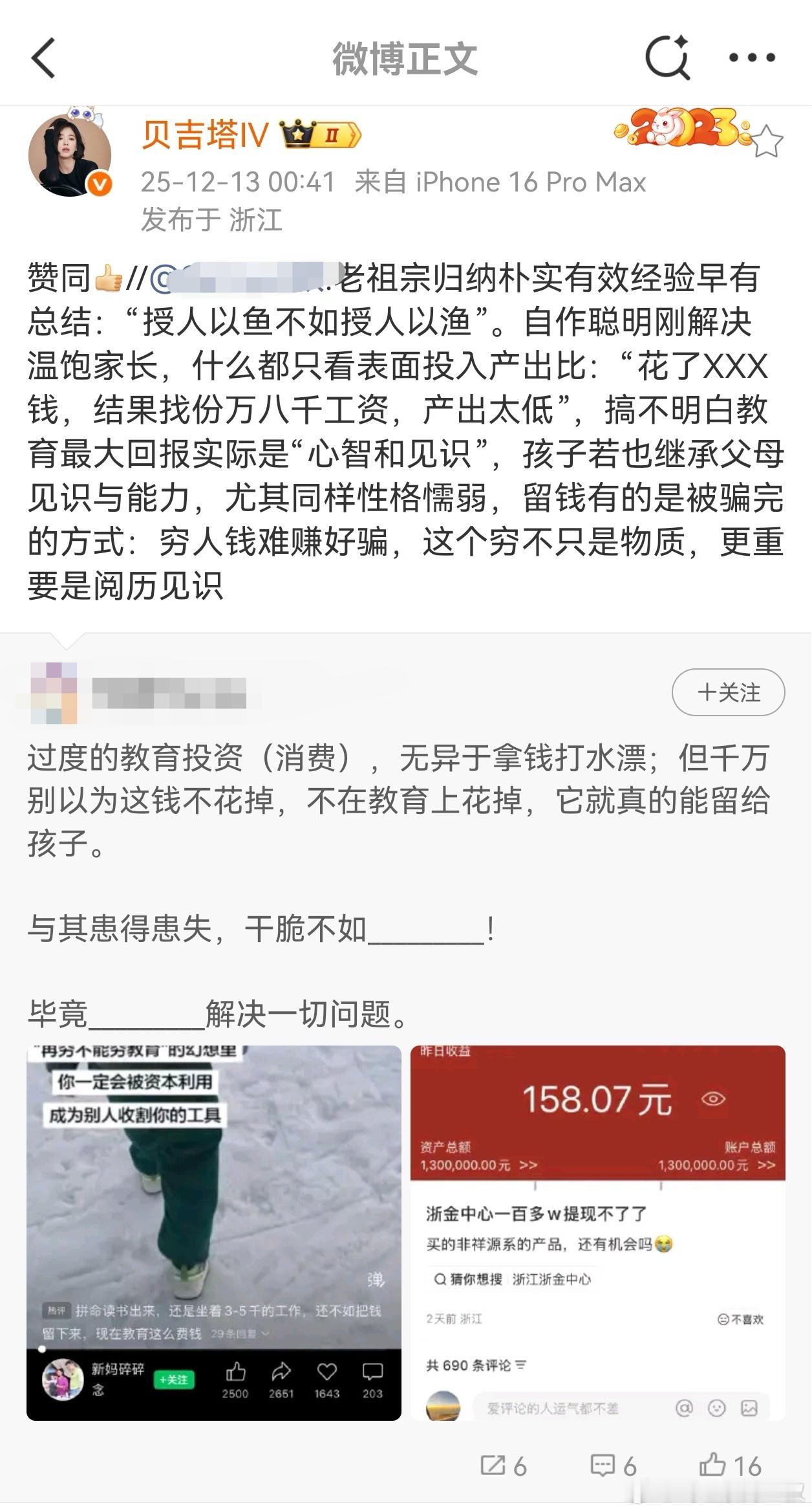一大早起来,看到有人拿浙金中心的投资者,做为教育的必要性,我差点笑岔了。这是要多没见识,才会觉得在浙金APP上搞投资是低学历者。先搞搞清楚,浙金中心的来龙去脉,再去弄明白那些投资者,再说这个梗吧。也许你会发现,学历高的人也许是比较好骗的一个群体,就好比有个帽子叔叔普法教育时候说,被电诈的人,没有学历差别,博士教授被骗几百万上千万的人也有。一个人有见识确实很重要,很宝贵的。但是,见识不等用于知识,是没法简单从教育获得的。见识一部分来源于知识(教育),但更重要是需要行万里路。申典起并不是博士,但是他对世界各国的了解的全面性,超过985大学教授,他是走出来的。