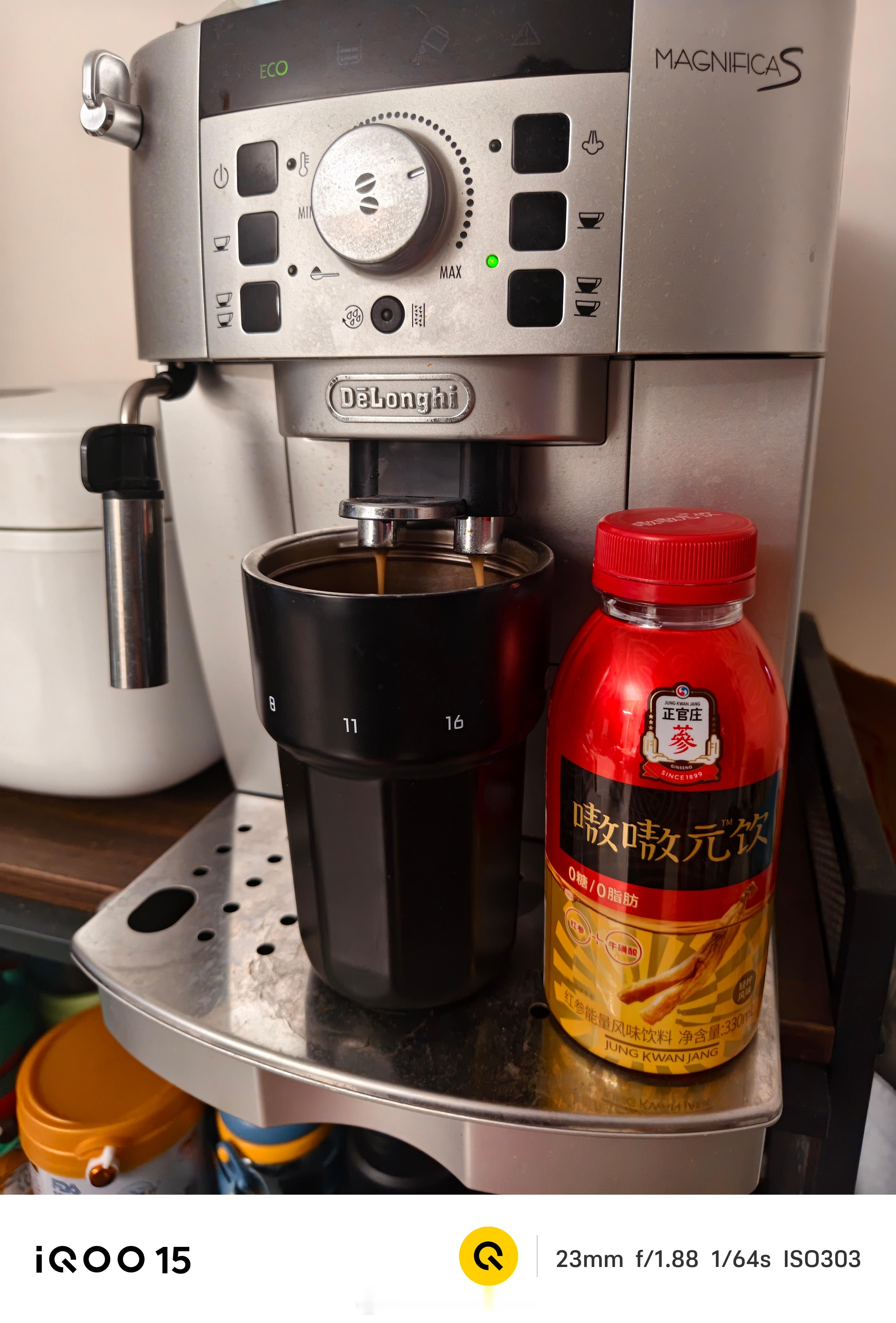 这嗷嗷元饮完全就是用中药汤子做饮料。而且在苦苦的中药汤子里加了柠檬,又酸有苦。除了我这种好奇心重的,我不知道还会有什么样的消费者会买。我加点咖啡看看能不能好喝一点。