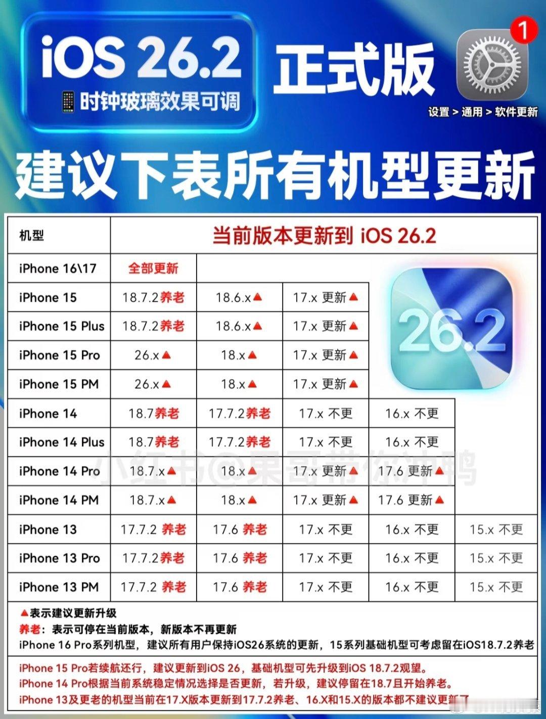 iOS26.2正式版来了ios26.2正式版来了,看网友升级体验:低音回来了,很丝滑,负一屏不卡了。看来大家的iPhone可以升级了。