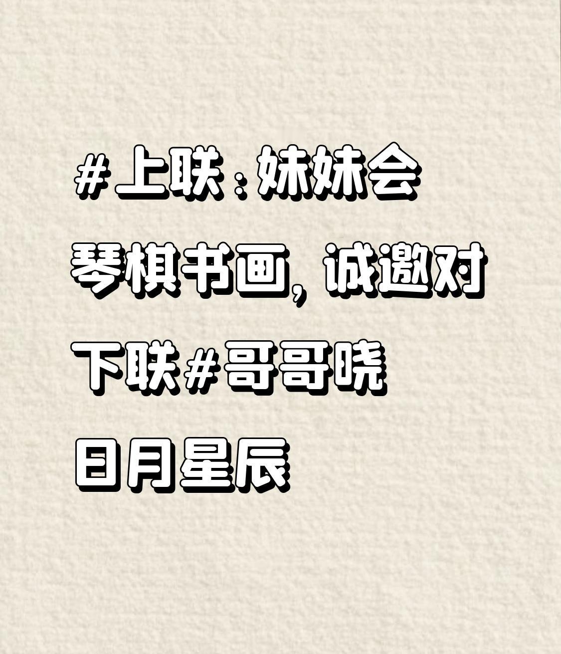 上联:妹妹会琴棋书画,诚邀对下联哥哥晓日月星辰