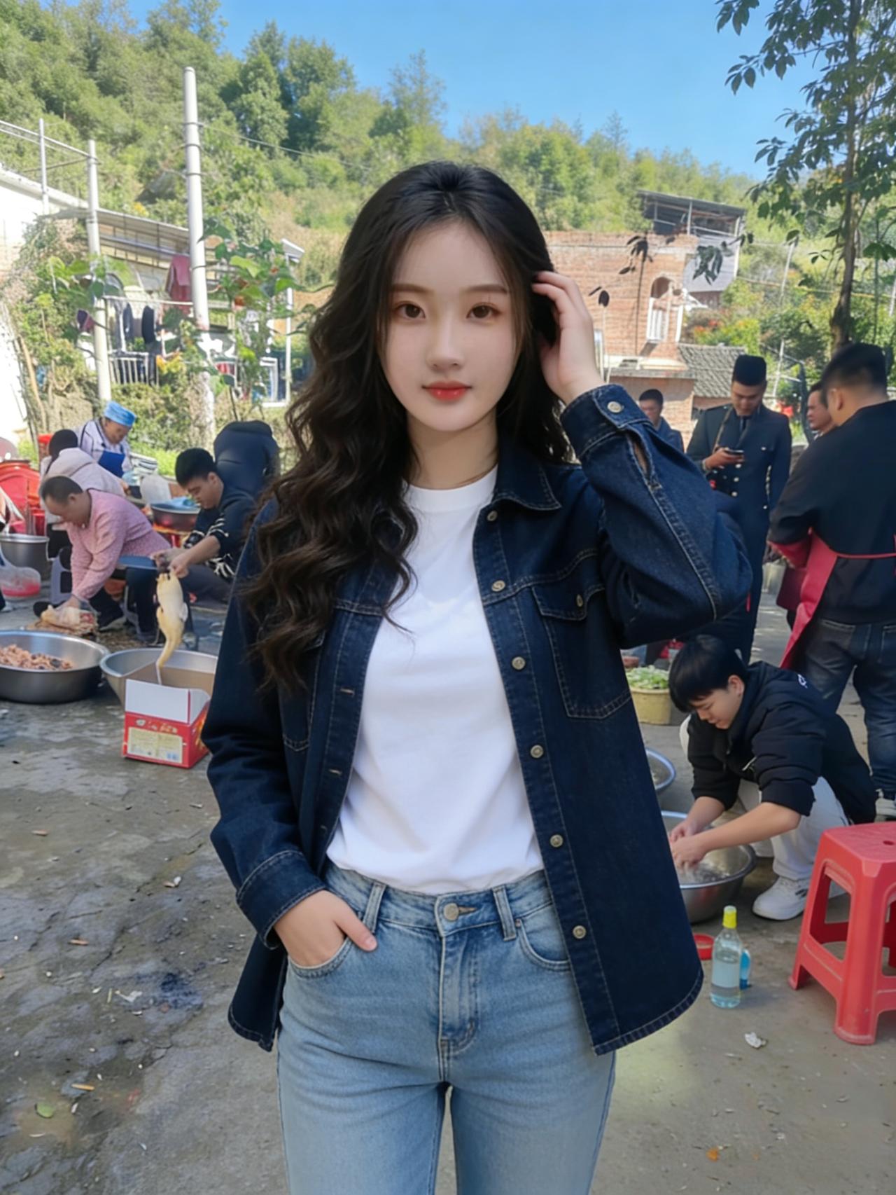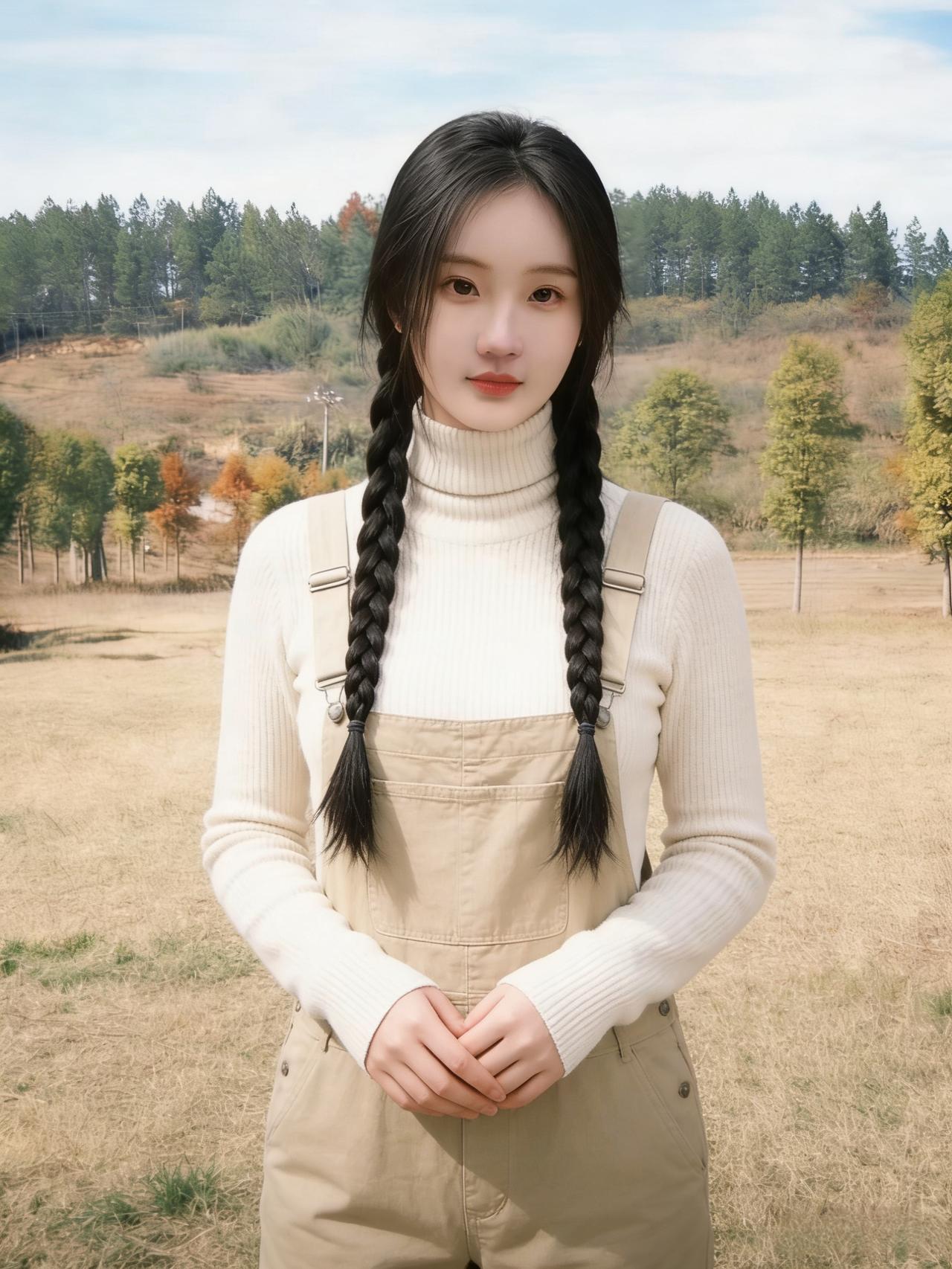 红砖矮墙围起烟火,灰毛衣接住南方的晴天 身后是剁骨的刀声,和人间沸腾的荤腥 她站成一帧静,在喧嚣里捞起自己的影 ~ 湖水漫过堤岸,灰毛衣裹着北方的蓝 枫叶红成小簇火,场馆的银弧碰碎云边 风掠过发梢,把乡音揉进陌生的湖面 ~ 枯树站成素描,灰毛衣贴着荒草的黄 阳光筛下薄暖,枝桠间漏下的风都凉 她的目光平展,像走过了一季的苍茫 ~ 白毛衣扎着麻花辫,背带裤兜住秋的软 草地铺着浅黄的绒,远山藏着未凉的蝉 指尖相扣时,青春在风里打了个旋 ~ 皮衣裹着灰毛衣,麻花辫斜搭在肩 树影筛下的光斑,吻过她抬手的弧线 风把衣角吹起,揉碎了温柔与干练 ~ 牛仔衣敞开白T恤,卷发绕着乡野的甜 红凳旁的烟火还在,她的笑撞碎了尘烟 人间的热闹与她,是帧与帧的牵连 ~ 六帧画面叠成河,灰的白的棕的蓝 乡野的烟火,城市的波澜,荒草的孤单 她站在每一个瞬间,把自己活成风帆 ~ 毛衣的纹路裹着暖,皮衣的棱角藏着胆 麻花辫绕着青涩,卷发挽着人间的清欢 时光在镜头里蜷,她是自己的堤岸 ~ 南方的烟火烫,北方的湖水寒 荒草的风,草地的软,都在她眼里攒 一帧帧的她,是人间最温柔的满 ~ 刀声落,湖水蓝,枯树摇,秋草漫 皮衣的飒,牛仔的闲,毛衣的暖 她站在岁月的帧里,把故事织成衫 ~ 红砖旁的喧嚣,湖水边的清欢 枯树下的凝望,草地间的烂漫 每一个她,都是时光的彩蛋 ~ 灰毛衣是底色,白毛衣是柔软 棕皮衣是锋芒,牛仔衣是自然 她把自己揉进画面,成了最美的落款 ~ 风从南方吹到北方,从烟火吹到荒滩 她的影,在六帧里流转,从不曾散 像星子落进人间,碎成温柔的光斑 ~ 剁骨的声响还在,湖水的波纹未干 枯树的枝桠还晃,草地的虫鸣仍软 她的笑,是穿过所有画面的暖 ~ 几十行的诗,装不下六帧的甜 她站在人间的热闹与清欢之间 成了时光最偏爱钟情的那一眼