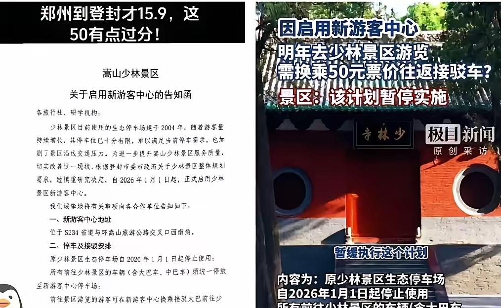 少林寺新规成了大家讨论的焦点!从2026年元旦开始,不允许私家车开进寺庙区域,游客得在新游客中心换乘景区的接驳车,来回一趟要50块钱。这价格让我这个本来想带父母去礼佛的人有点犯难——一家四口光交通费就得200块,还不算门票和香火钱呢。 之前中秋假期试运营的时候,票价还只要30块,现在突然恢复原价,还必须换乘,难怪不少人心里都觉得不舒服。好在12月10号的时候政策先停了调整,我上周去的时候,老停车场还能正常停车。跟接驳车司机闲聊,他们也说在等最终方案,最怕定太高的价格被游客骂。 听在景区工作的朋友说,新游客中心旁边正在盖商业街,不少人就担心是不是想借着这个机会多吸引游客来消费。虽然能理解寺庙日常维护确实需要钱,但收多少钱得让大家觉得合理才行。或许可以试试保留原来的步行通道,把具体的运营成本明细公开出来,再搞个分级票价,比如淡季的时候收10块,老人、小孩还能半价。 宗教场所搞商业化得有个度,关键是要守住“游客自愿”“收费透明”“有替代方案”这三条底线。现在先暂停调整其实是个好信号,就盼着明年能出个新方案,既能让景区正常运营,又不让游客觉得不舒服。毕竟少林寺可是咱们的文化名片,可别让太多铜臭味把那份佛门的清净给盖过去了。你觉得这个接驳车收费到底合不合理?要是你带着家人去,会愿意为这50块钱的交通费买单吗? -search.byteimg.com/img/labis/8953472ecdc2b35ef111ce73cf6dc254~480x480.JPEG
