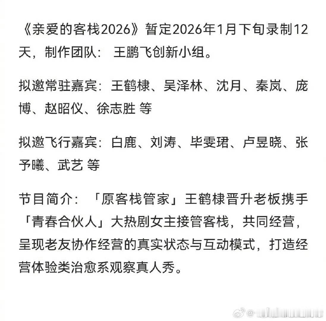白鹿亲爱的客栈白鹿亲爱的客栈2026 白鹿亲爱的客栈2026