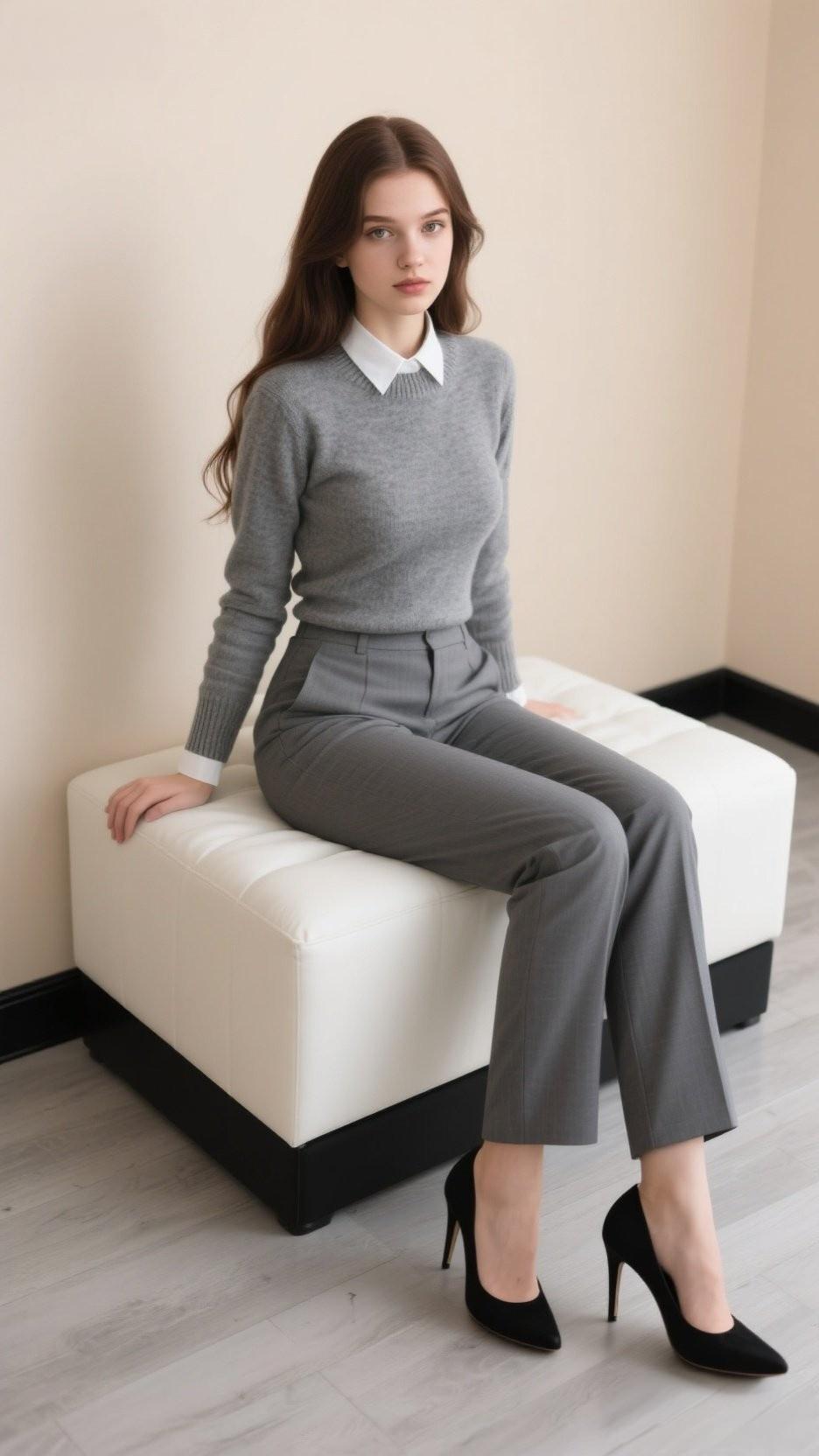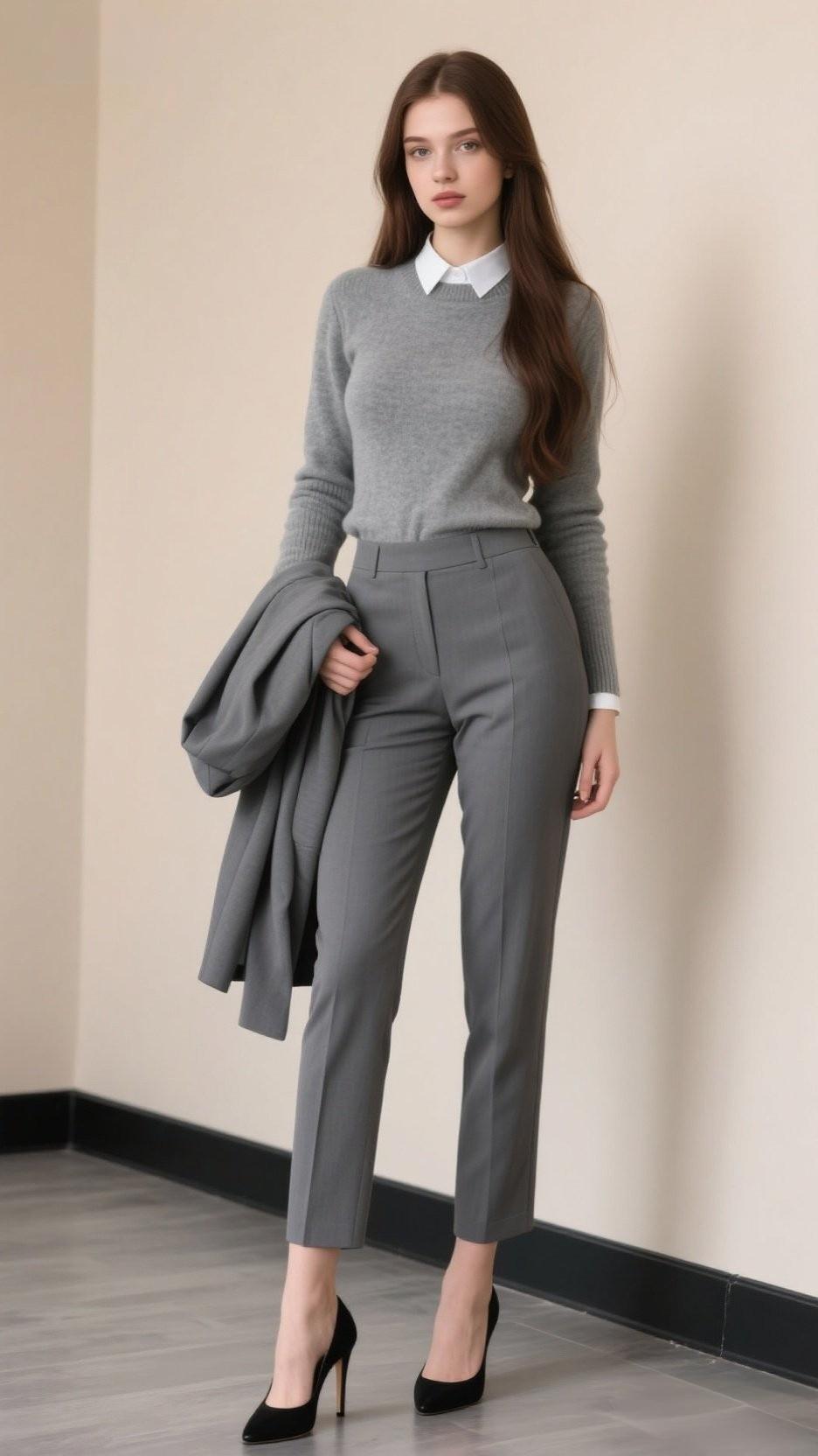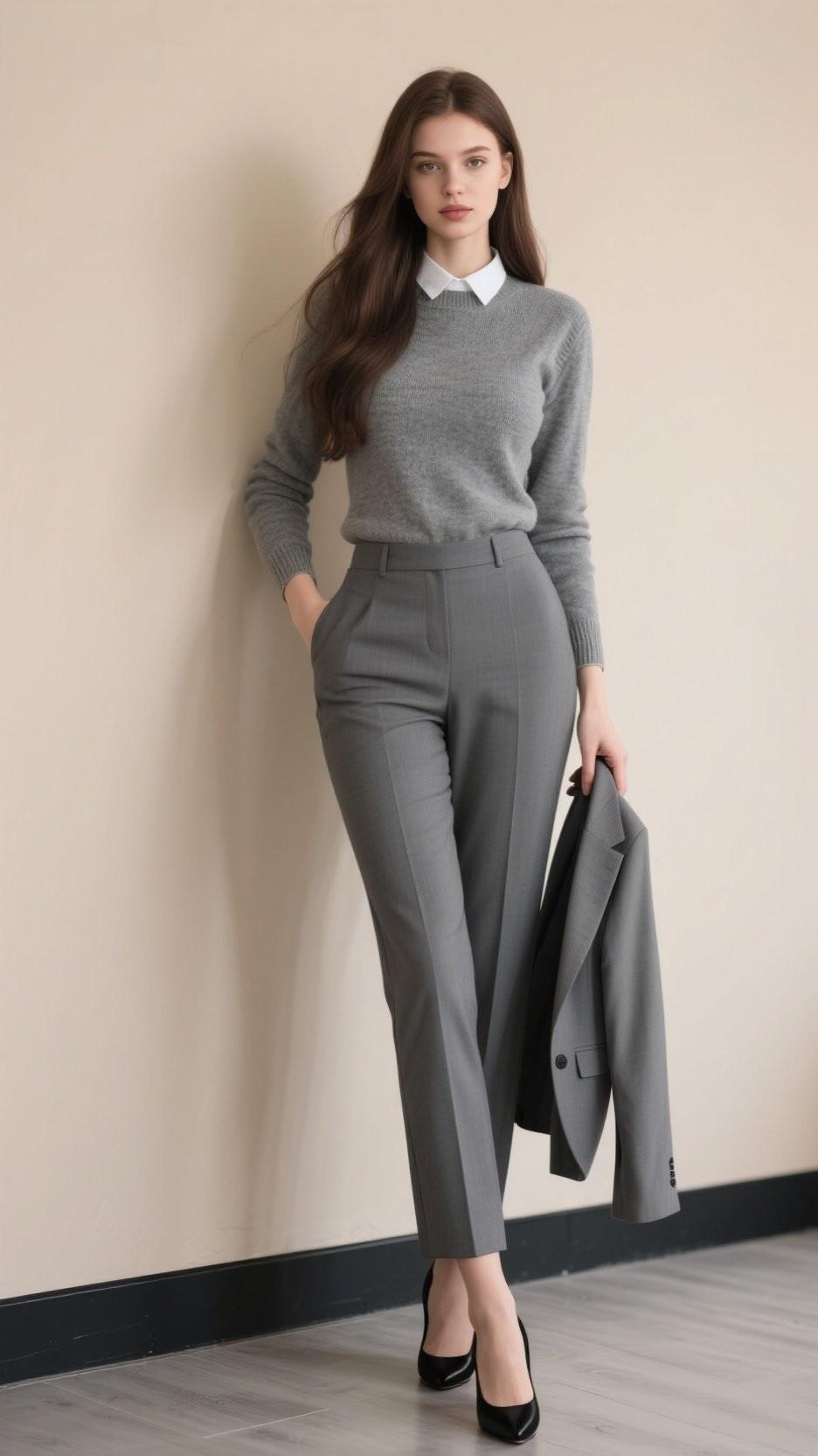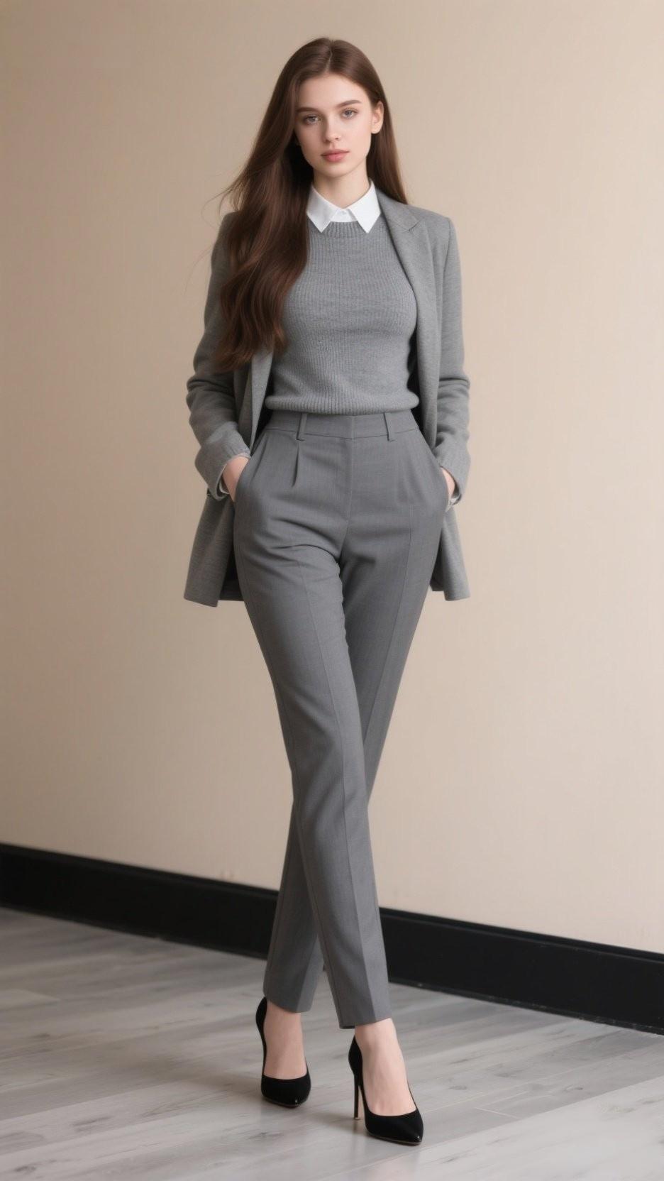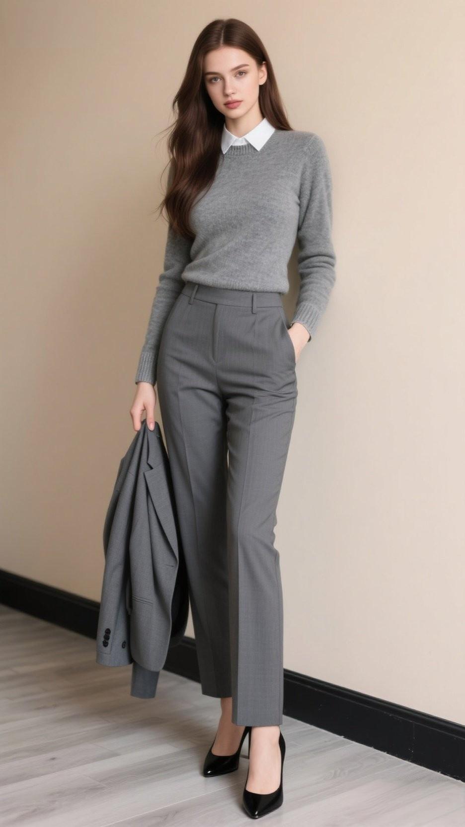 优雅职场风穿搭,灰色西装套装搭配黑色高跟鞋,尽显干练气质!美丽不冻人,怎么穿好看又保暖?