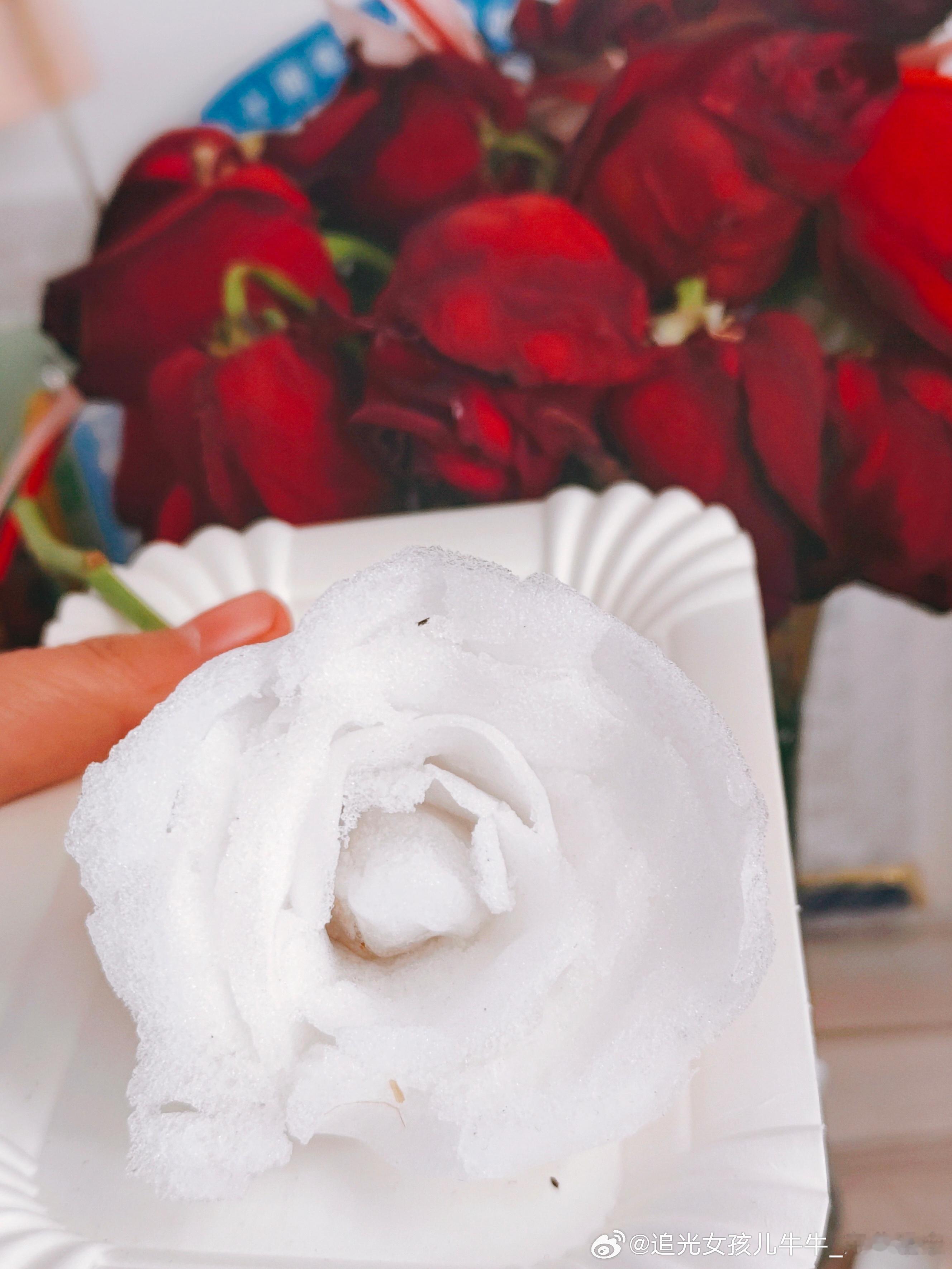 你的城市下雪了吗 送米一朵雪玫瑰🌹好冻手