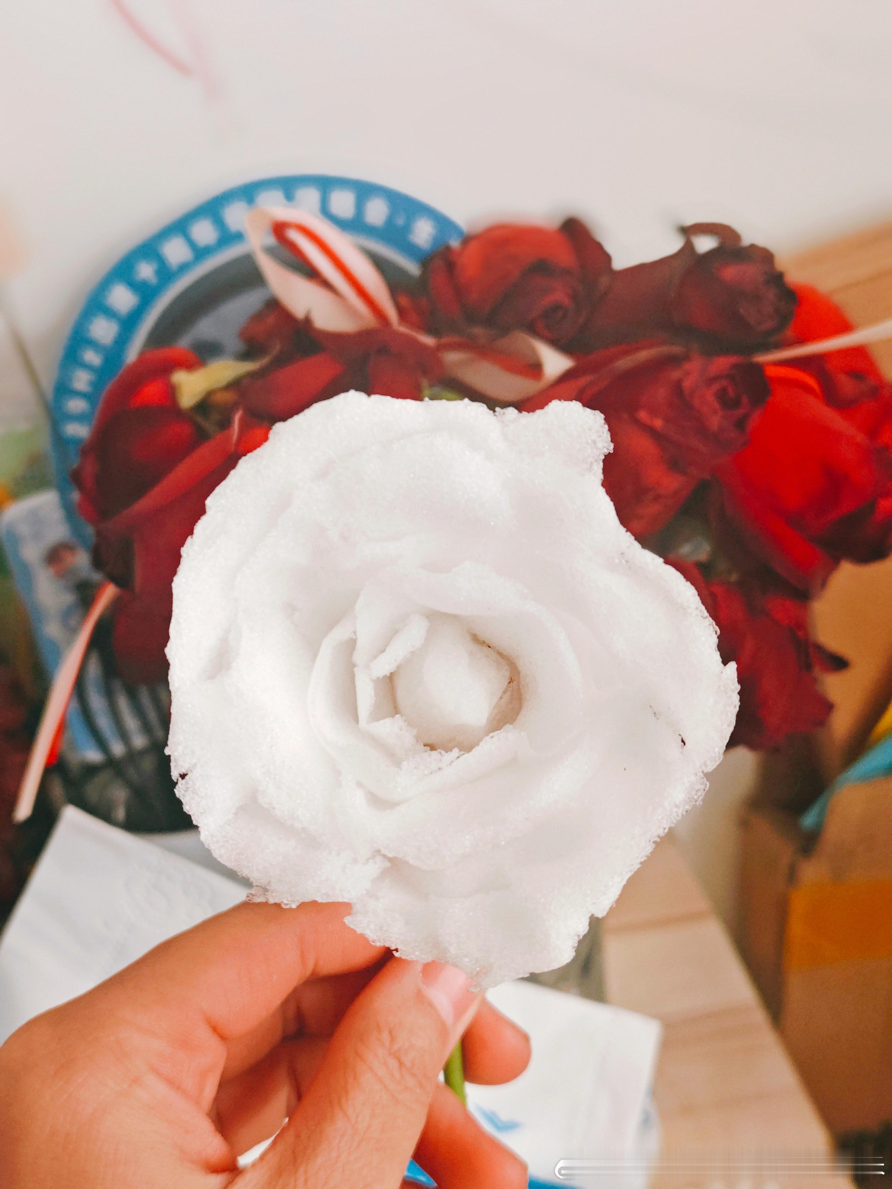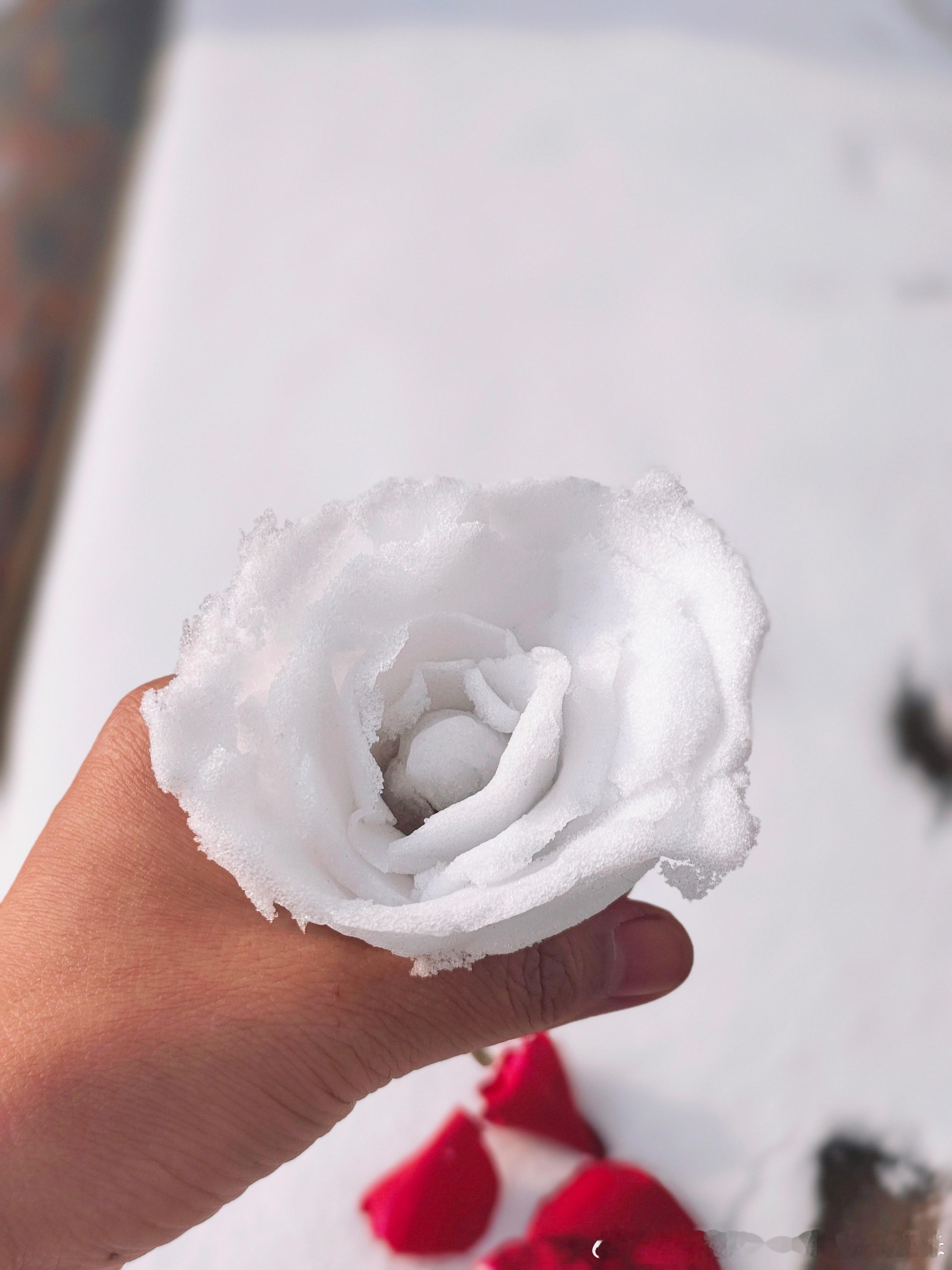 你的城市下雪了吗送米一朵雪玫瑰🌹好冻手