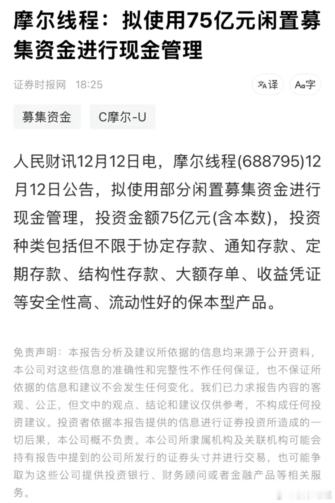 摩尔募集了80亿,扣除手续剩余75.7亿,拿75亿理财去了 还知道留七千万用于公司运营和研发。