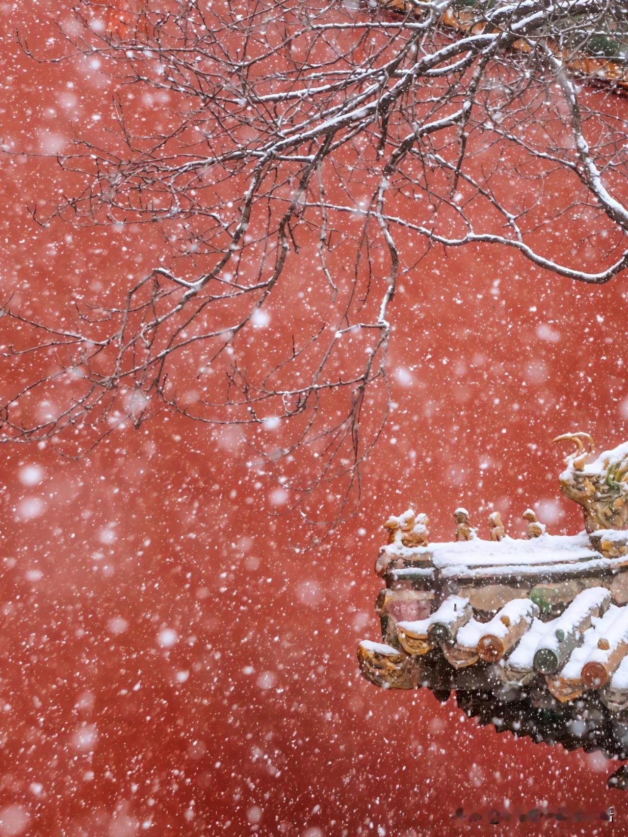 红墙青瓦,大雪后的紫禁城,是不管别人死活的美,此刻我想去那儿与人白头偕老的心,已经达到了顶峰…… 但问题来了! 钱在哪儿? 人在哪儿?