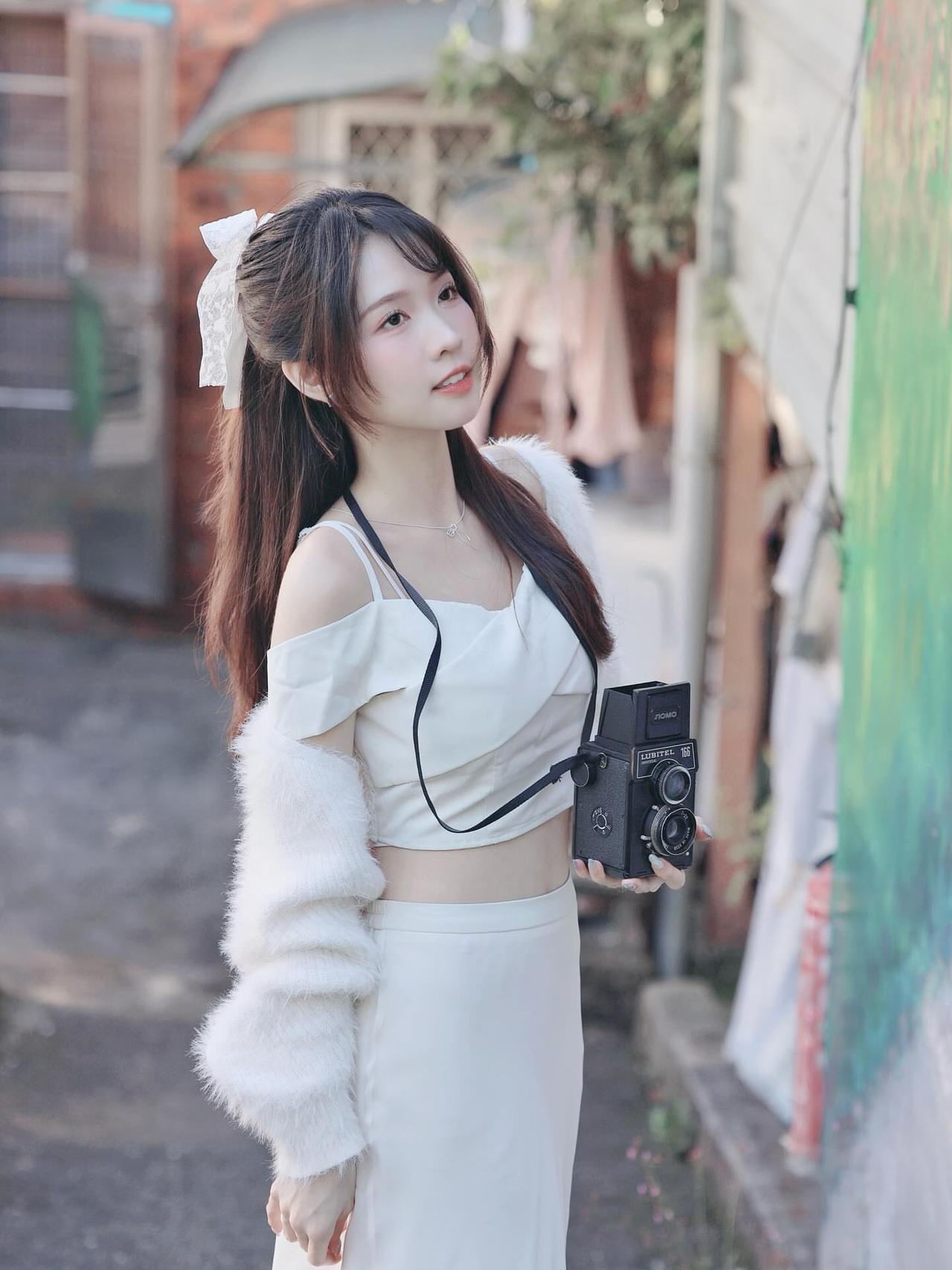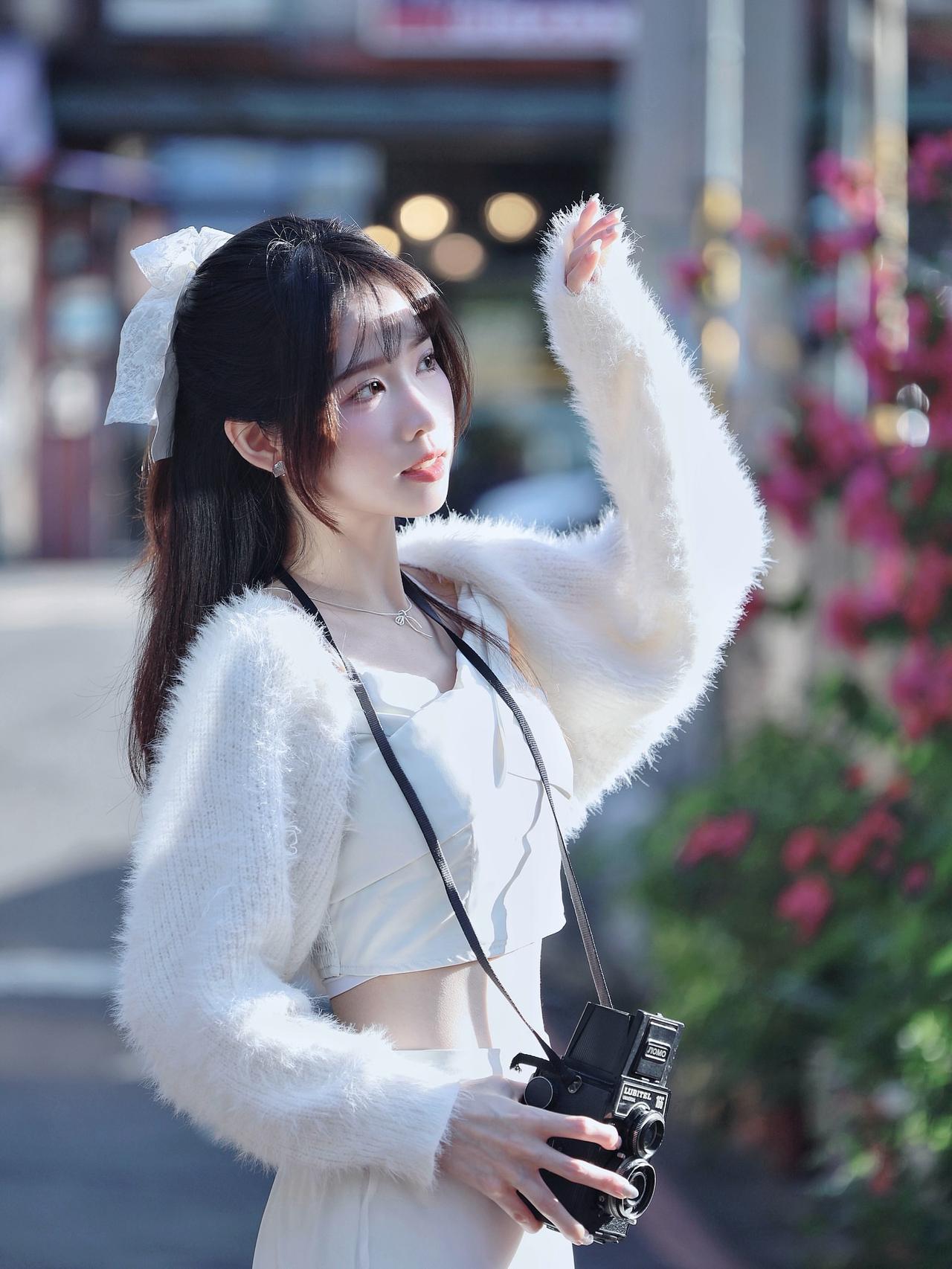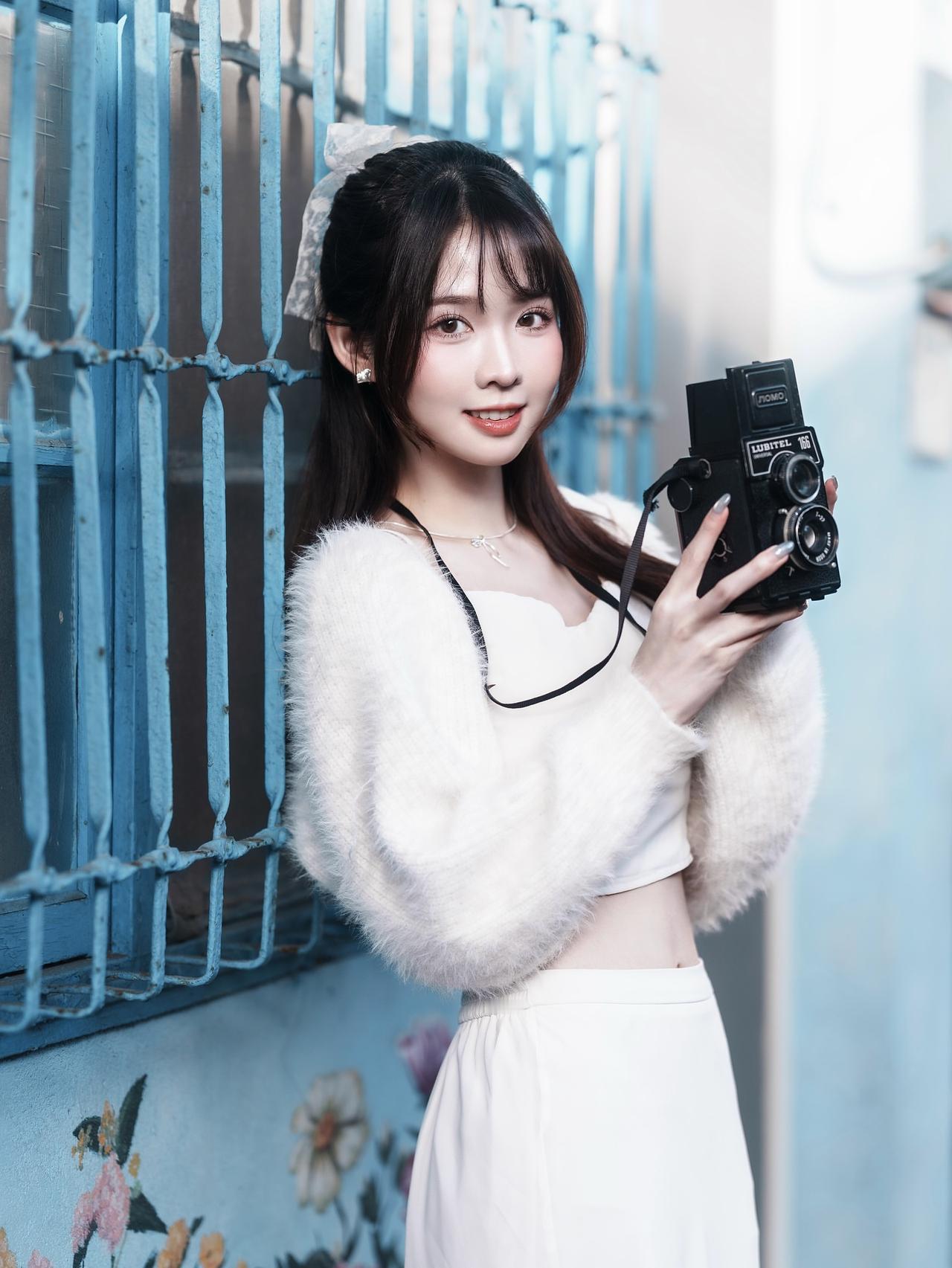 少女手持复古相机,漫步在街头巷尾,捕捉美好瞬间。街角里的美女街拍美少女写真