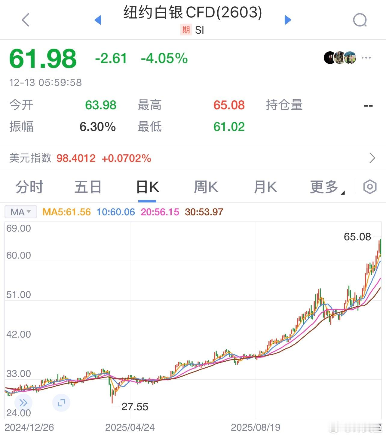 白银涨幅120%碾压黄金白银暴涨有人2月狂赚16万🚨白银暴涨,理性围观!🚨近期白银价格一路狂飙,年内涨幅甚至超过100%,主要原因如下:1. 供需失衡:全球白银库存降至十年低位,而光伏、新能源汽车及AI领域的工业需求却在爆发式增长,导致现货紧缺。2. 降息预期:美联储降息概率高达87%,美元走弱,提升了白银的吸引力。3. 资金涌入:大量投机资金流入白银ETF,叠加散户的“FOMO”(错失恐惧)情绪,助推了涨势。⚠️ 风险提示 ⚠️虽然白银涨势惊人,但切勿盲目追高!当前银价已处于历史高位,技术面严重超买,随时可能出现剧烈回调。汇丰等机构预测2026年下半年价格可能缓和。建议大家保持理性,不要成为最后的“接盘侠”,投资需谨慎,仓位要控制!白银价格