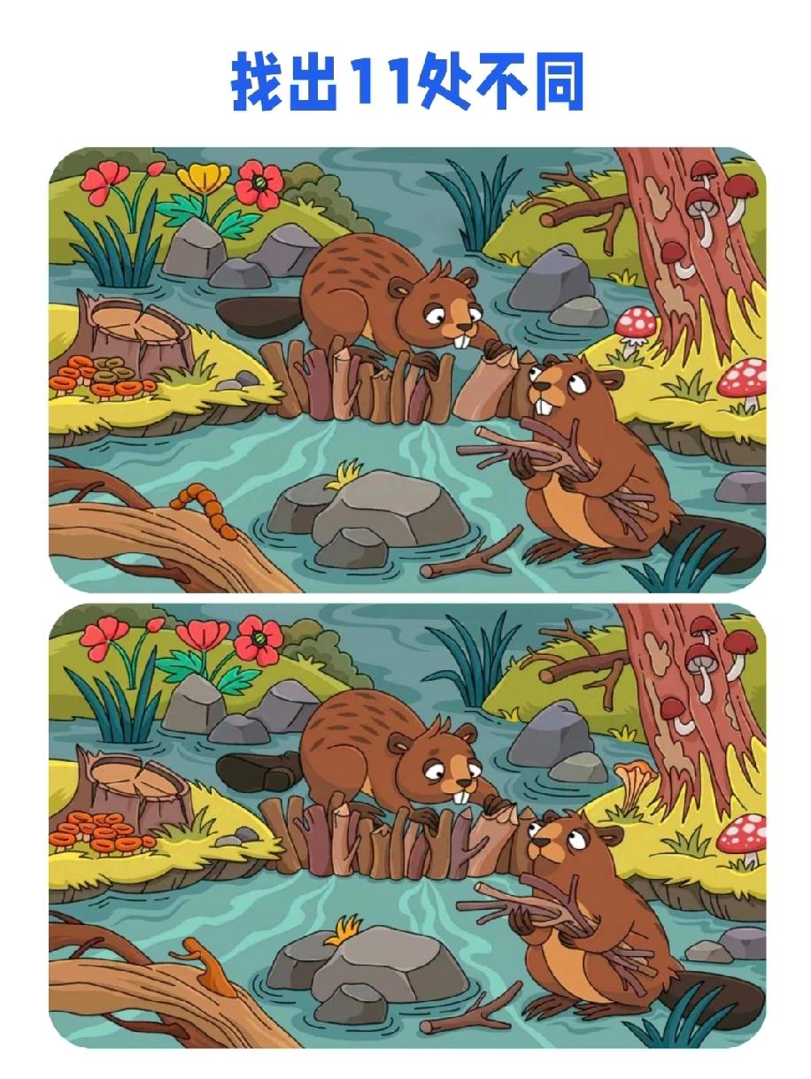 服了!这张海狸找不同图藏11处差异,能找全的评论区秀操作!