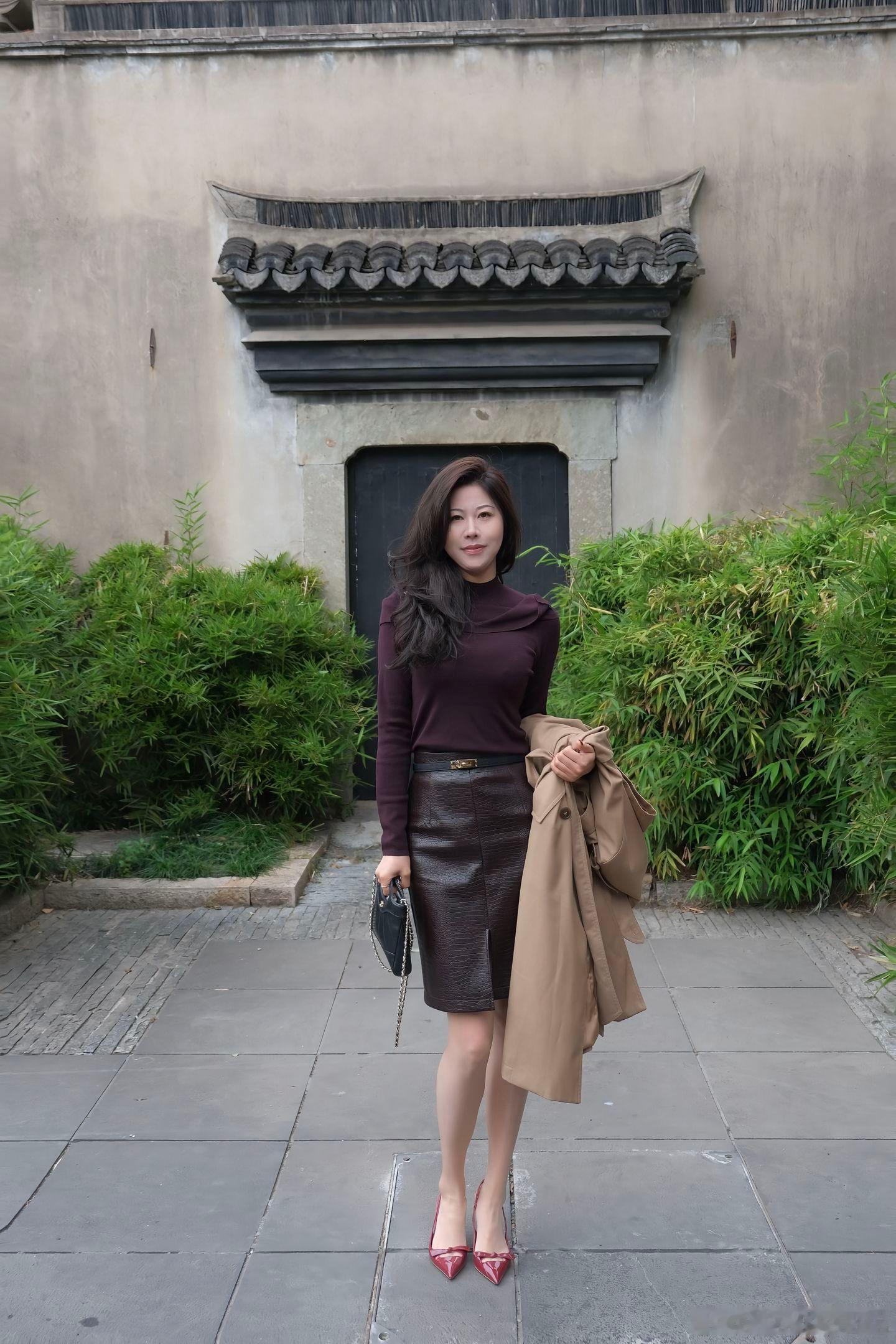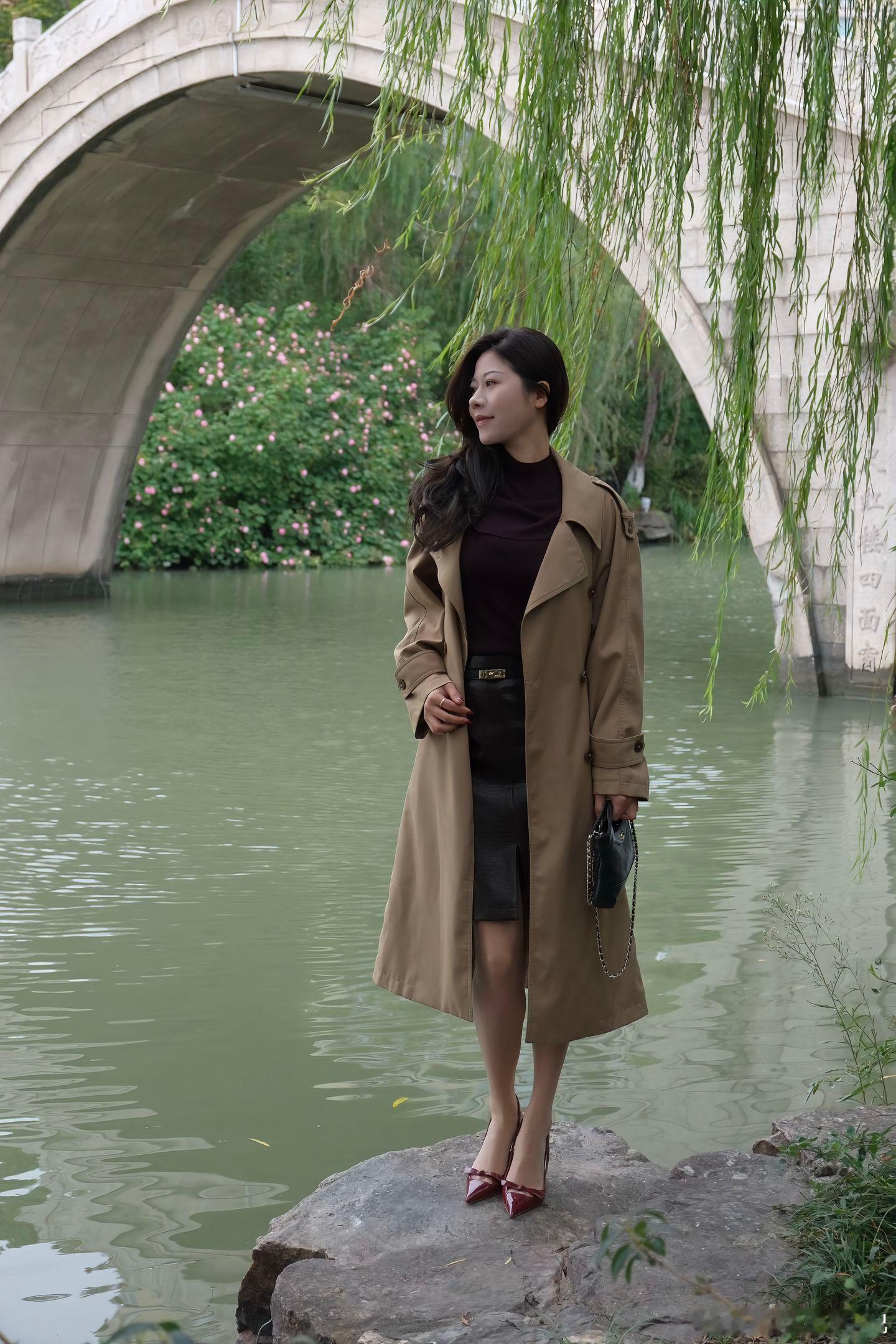 今天穿什么 棕色大衣,碎花连身裙,黑丝,出门回头率拉满美女绘梦长廊