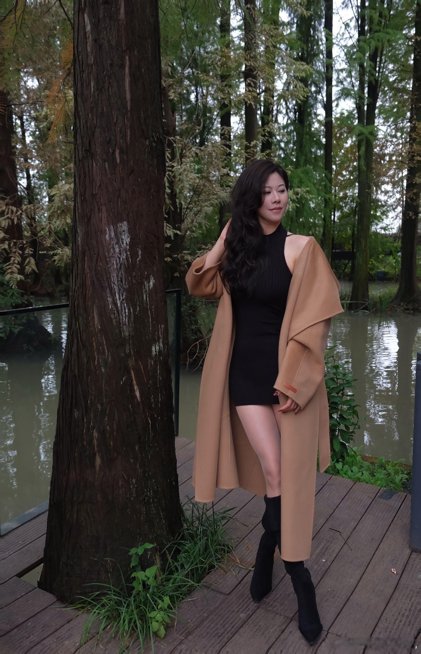 今天穿什么 棕色大衣,碎花连身裙,黑丝,出门回头率拉满美女绘梦长廊