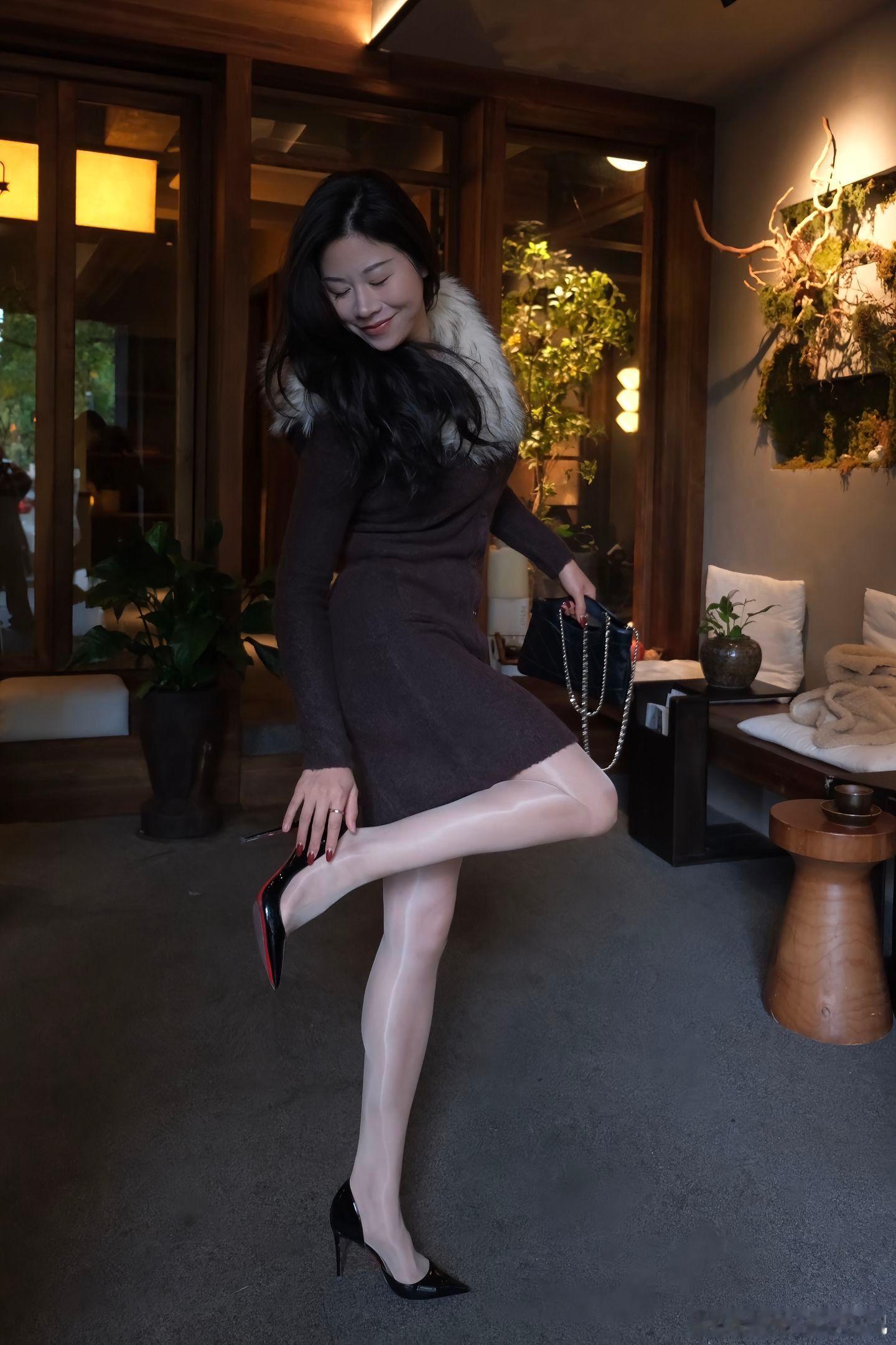 今天穿什么 棕色大衣,碎花连身裙,黑丝,出门回头率拉满美女绘梦长廊