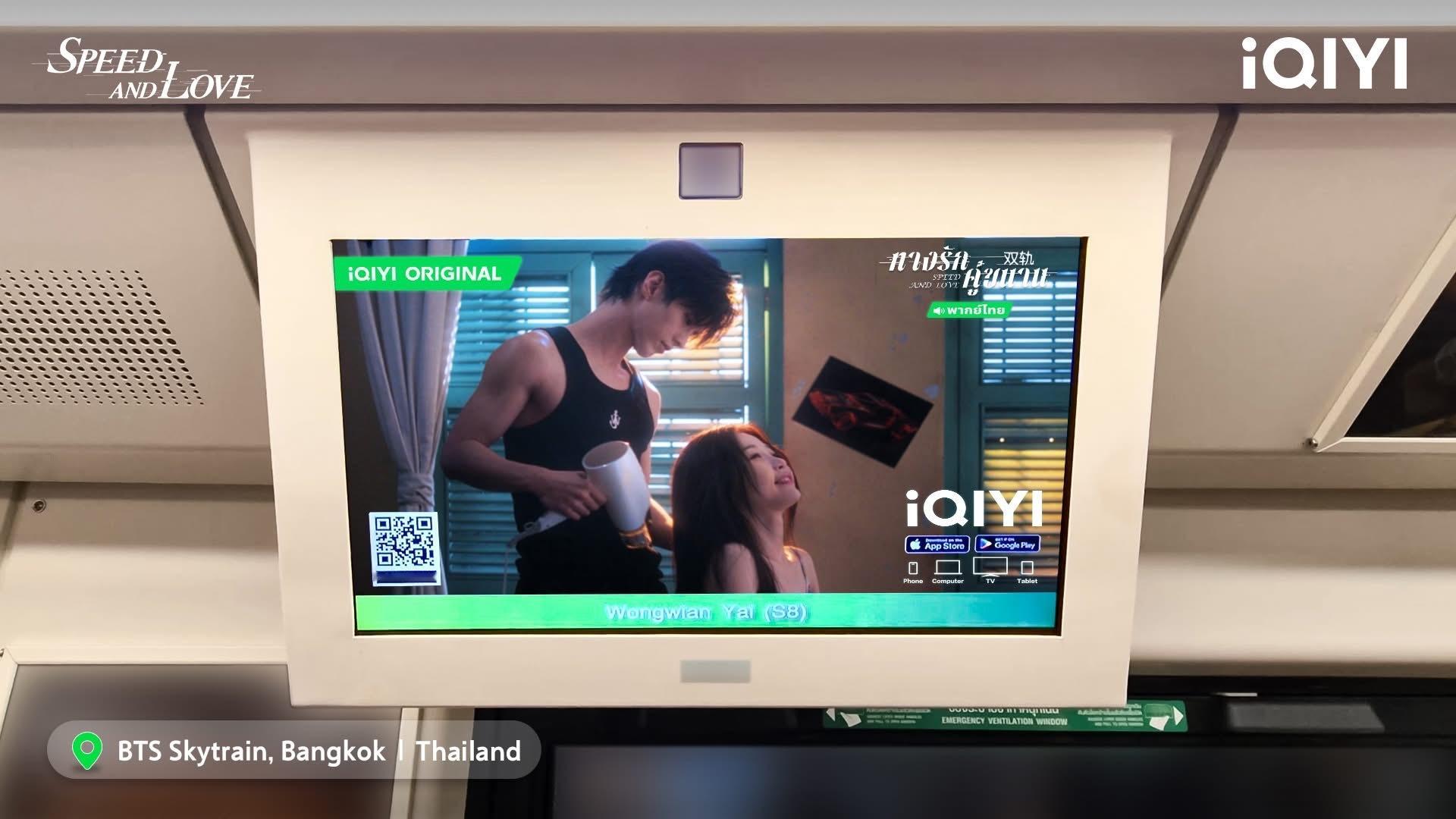 爱奇艺国际版泰国站为虞书欣、何与领衔主演,吴翊歌Mike Angelo特别主演的30集电视剧《网剧双轨 /ทางรักคู่ขนาน》在泰国曼谷BTS云轨站台铺放广告。