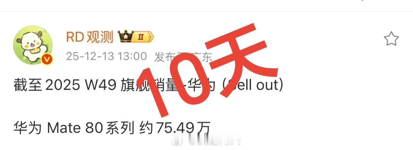 华为Mate80系列在产能没拉满的情况下,10天卖了75万台,这个数据在国内也就只有华为了吧,而且华为还是在最后发布的情况下。