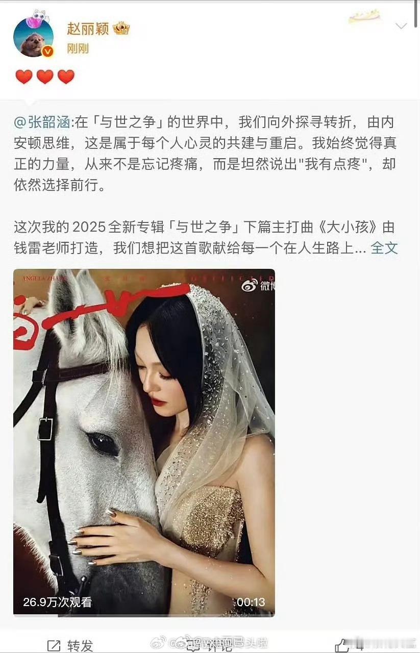 赵丽颖转发宣传张韶涵新专辑,然后秒删了 丽丽又在搞什么?