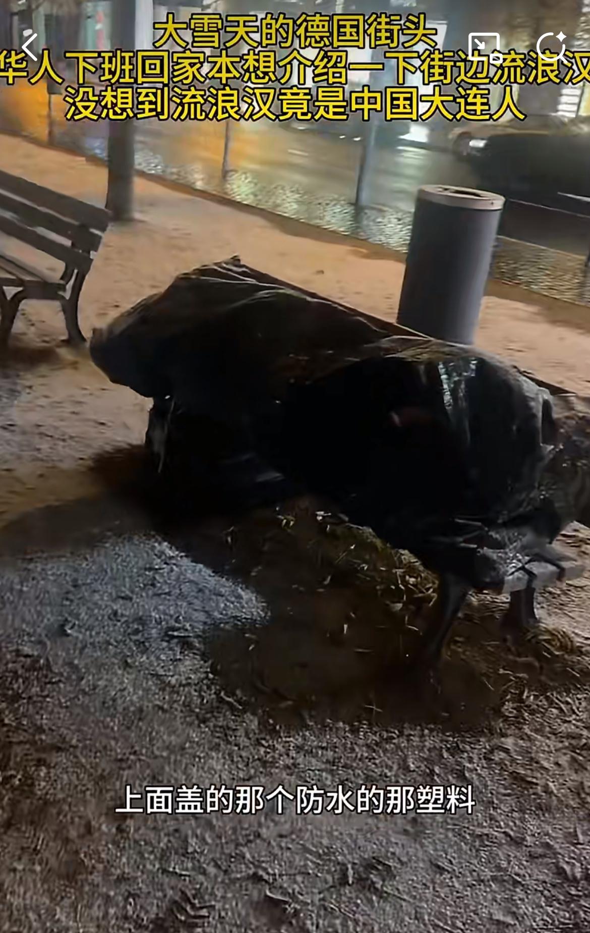一德国华人男子下雪天偶遇露天躺椅上的流浪汉,上去看情况结果人说中文,一问是个大连人,还是个女滴。男子问她,为啥大冷天睡在外面,女滴没有回答,说口渴请这个男子给她买瓶饮料喝,男子说,没带现金,女滴说刷卡也行,男子又说卡也没带。这就是同胞遇到同胞,遇到困难连伸手买瓶饮料都找理由,光顾着拍视频,冷血到发紫。德国华人 广东流浪汉 流浪汉