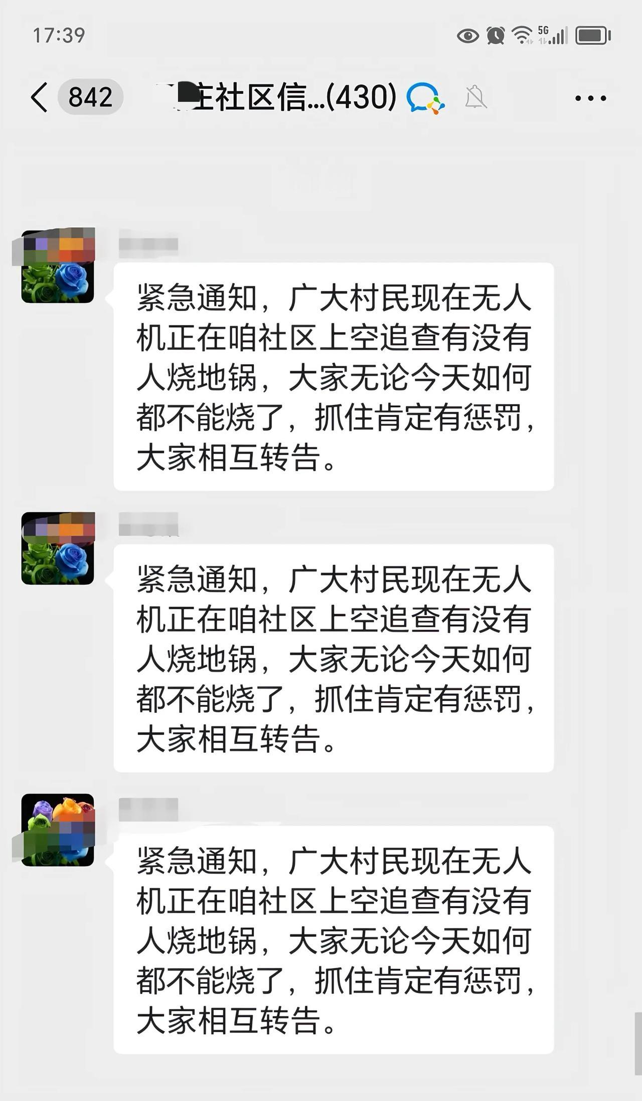 烧地锅污染空气被惩罚,社区群里通知不让烧地锅一旦抓到肯定有惩罚。 为了不让村民烧地锅,专门派无人机在社区上空飞行查看,社区工作人员告知村民烧地锅被无人机看到要有惩罚。 烧个地锅能有什么污染,自古以来村里人都是烧地锅做饭,2025年了还不能烧个地锅。