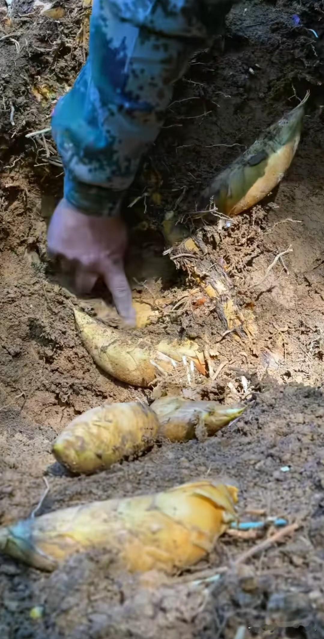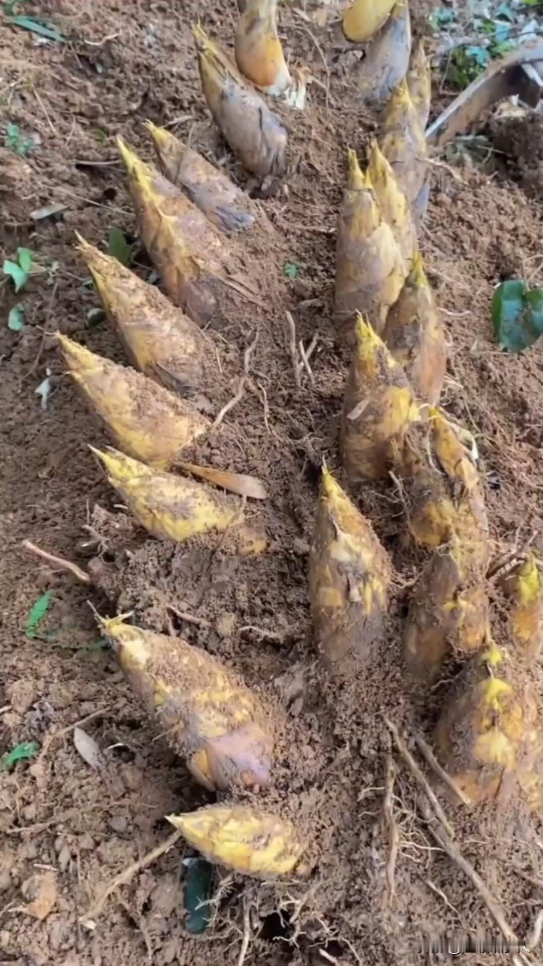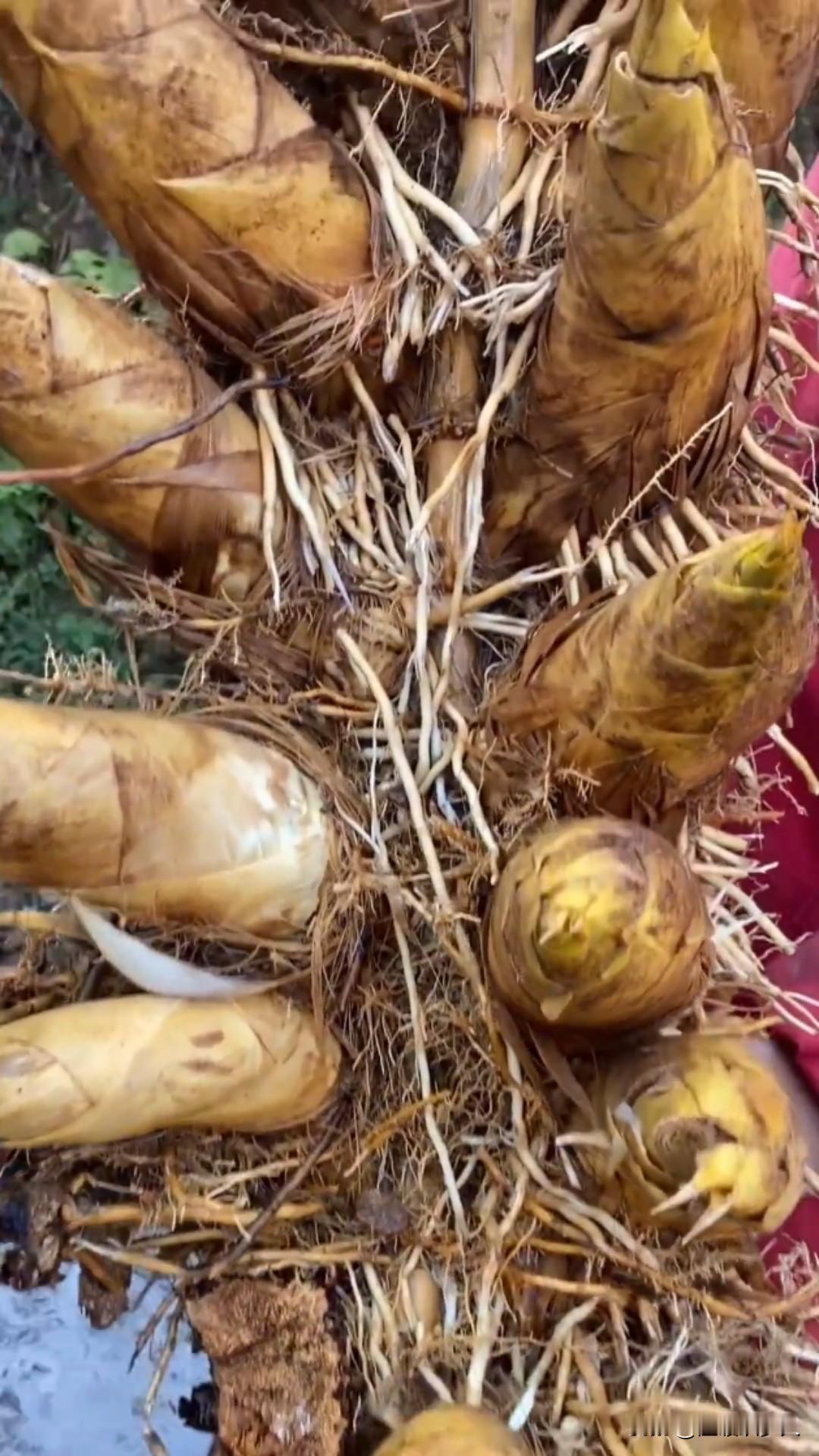 见过这般好似排兵布阵般生长的笋吗?是不是令人惊喜不已? 又到了冬季采挖冬笋的时节,老家屋后、村边到处都是竹子。不少人已然开始动手挖掘,如今市场上冬笋价格达到十多块一斤,着实不便宜! 你们那里现在冬笋多少钱一斤呢? 顺便分享一下挖冬笋的小技巧: 学会这几个挖笋顺口溜,挖笋便轻而易举。 首先要寻得一处繁茂的大年竹林。 何为大年? 即竹叶翠绿且茂密,从竹梢往下,每一节竹节呈青绿色,或者青绿色中夹杂着金黄色。 若是小年,竹子则稀疏发黄。新手先观察竹林和地面,优先寻找那种大鼓包、大裂缝,边上有烂笋、豆笋的地方,基本上在五十公分左右;有的青鞭笋在两头,一般在一米到一米六之间。 特别要留意“青边大黄必出笋王”这一诀窍。 单独一根竹子的为公竹,笋相对较少;两根竹条为母竹,笋较多。 竹节短、笋较浅,竹节特别长,笋一般距离较远,竹笋长得也相对较深。 一年竹不用去挖,基本没笋。 两年竹的笋基本在竹兜旁边一米左右。 四年竹的笋比较多,分布在两米到四米左右,此时笋鞭已开始长笋,笋数量众多,竹朝哪边,笋就在哪边。 遇到断鞭,往回挖五十公分左右必定能挖到笋。 挖完竹笋后,要用土将坑填平。 这些挖笋小技巧你学会了吗? 山间冬笋 竹林挖冬笋