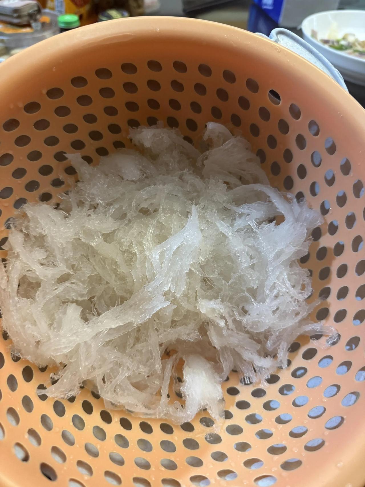 有钱人吃燕窝像吃沙河粉一样 今天去朋友家吃饭,他们家吃燕窝跟吃沙河粉一样用个简单的篮子,洗干净就炖