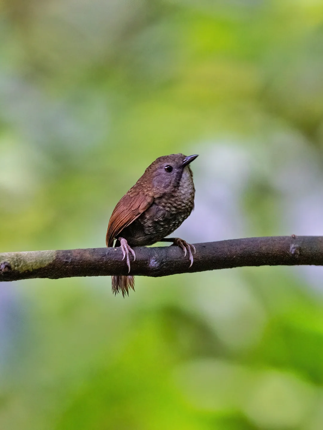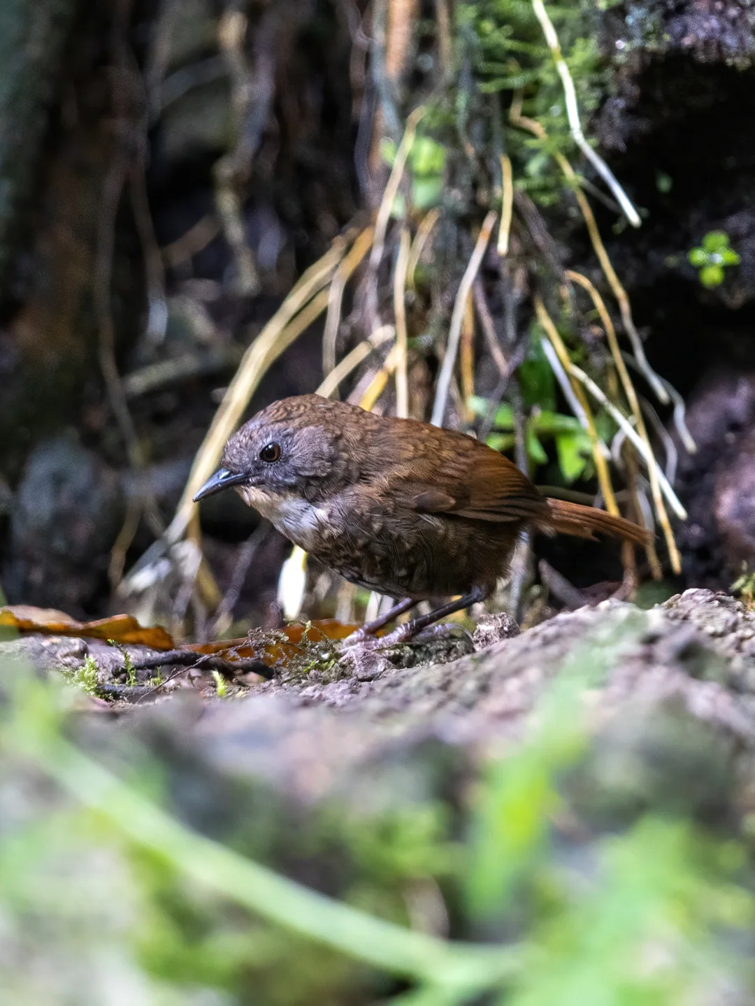 原创拍摄于2024.06 淡喉鹩鹛,雀形目鹛科鹩鹛属。国保二级,以前是从长尾鹩鹛的亚种提升为独立鸟种的。 淡喉鹩鹛是深褐色的鹩鹛,如果不是相对较长的尾巴,很像卤蛋,另外喉部是淡白色,所以叫淡喉鹩鹛。 淡喉鹩鹛在我国不多见,主要在我国的西南地区。作为重庆人很自豪的是重庆的四面山被认为是最容易看到淡喉鹩鹛的地方,不过去了几次四面山看到了都没怎么拍好,他们喜欢在地面活动,草丛灌木遮挡太多,光线也阴暗。没想到这次在广西竟然有个塘,哈哈,拍了好多这个小可爱。