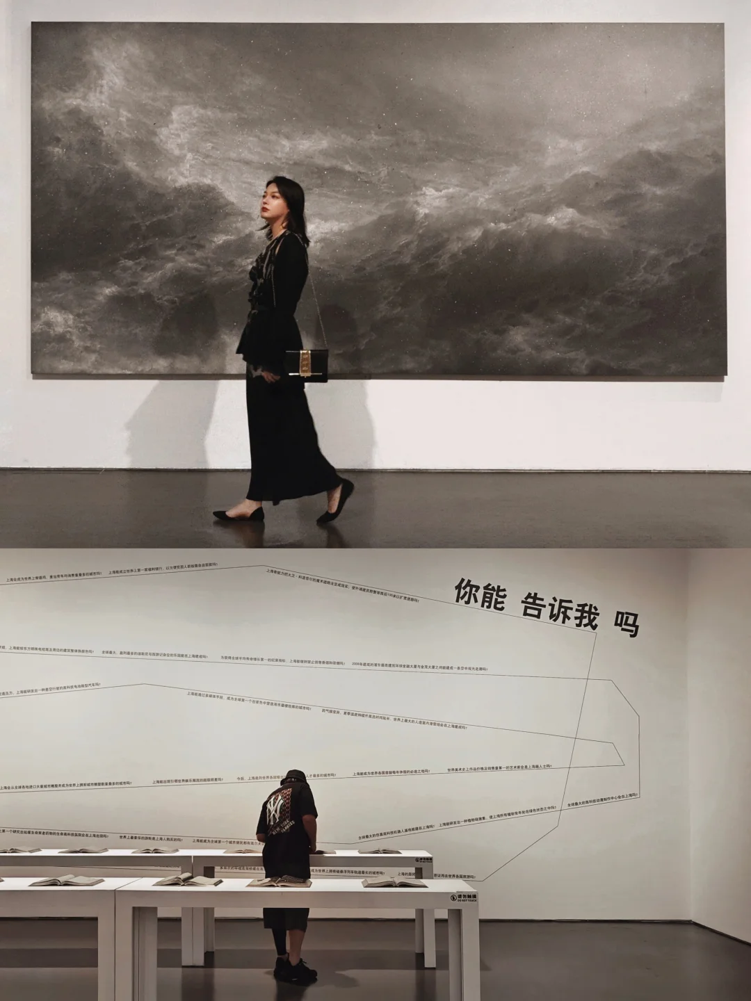 📸必打卡:展览入口红色大门框,序章大幅黑白海报墙,视觉张力强;张大千《番女掣厖图》罕见展出、中国现代艺术先驱庞薰琹《菊花倒影》、《蕉叶水渠》等代表作首展;2000年上海双年展重要展品《一念之间的差异》;海派家具沉浸式场景还原