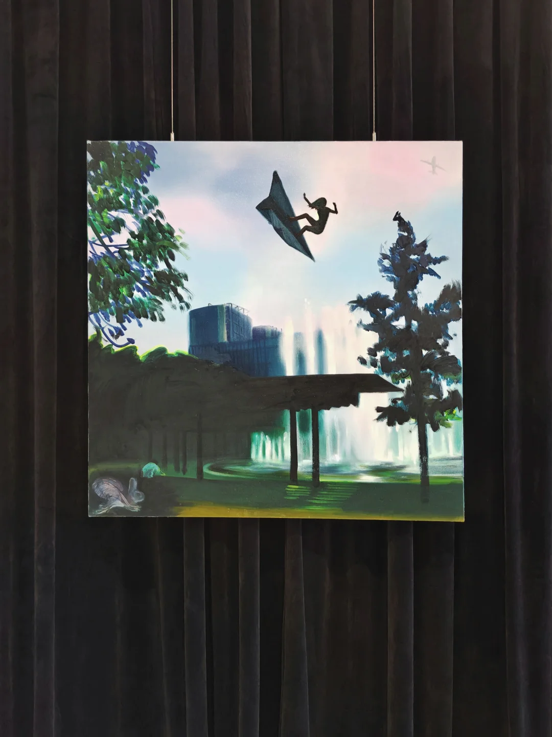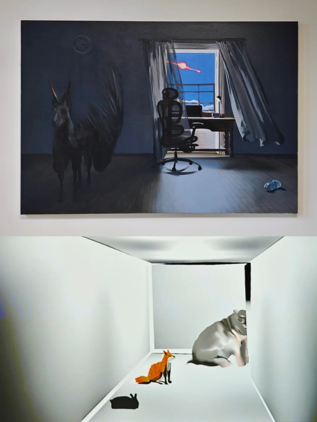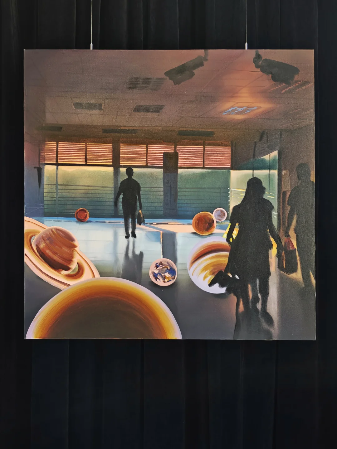 🎨油画《小行星》《地铁站》《纸飞机》《时间的夜》《宇宙地址》《扔》,从日常与宇宙视角出发,探讨生命与存在。