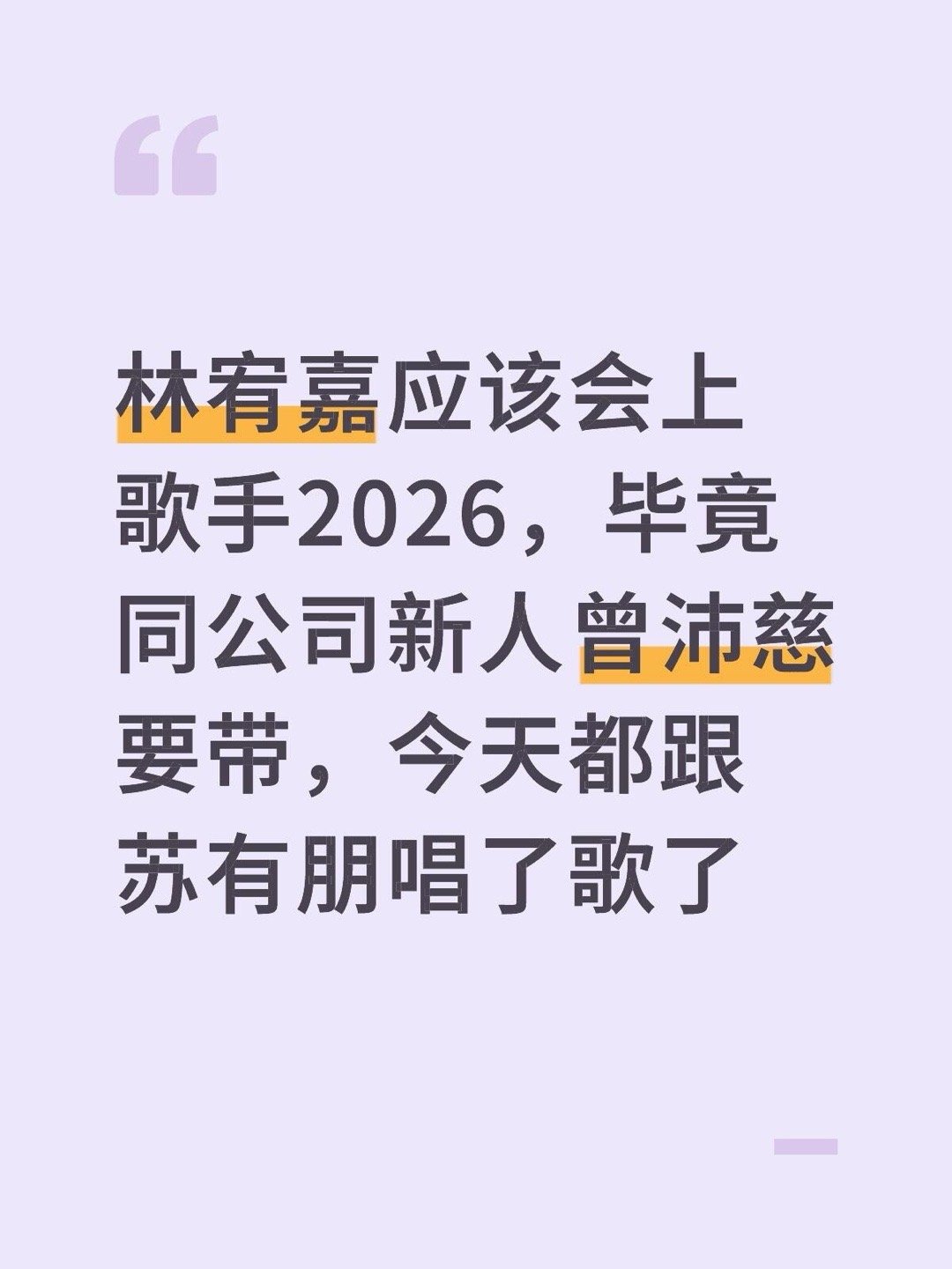 歌手2026曾沛慈和林宥嘉都上是吧今天都跟苏有朋唱曾沛慈是市场预热测试是吧,照目前热度和大家觉得好听程度,曾沛慈属于当年泡沫那种黑马了吧,林宥嘉带新人上歌手对吧歌手2026|