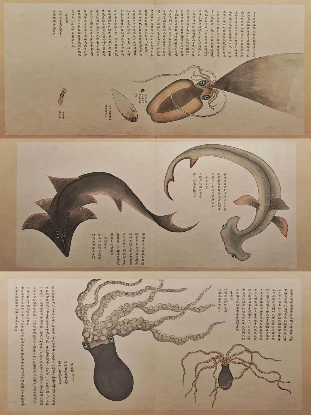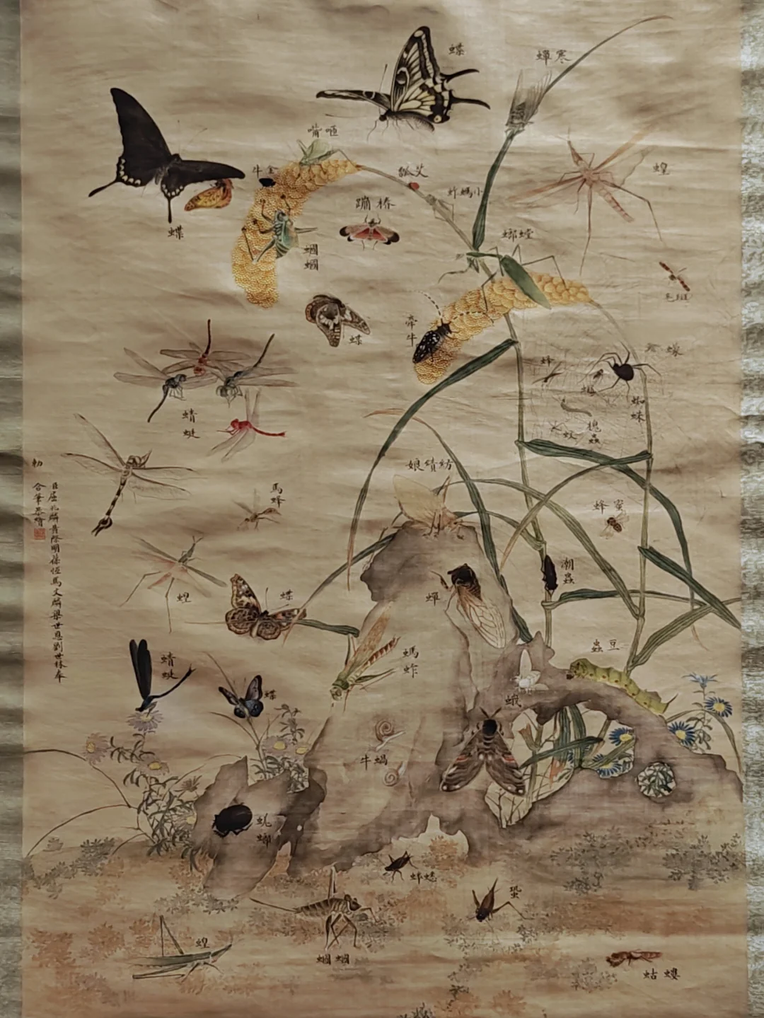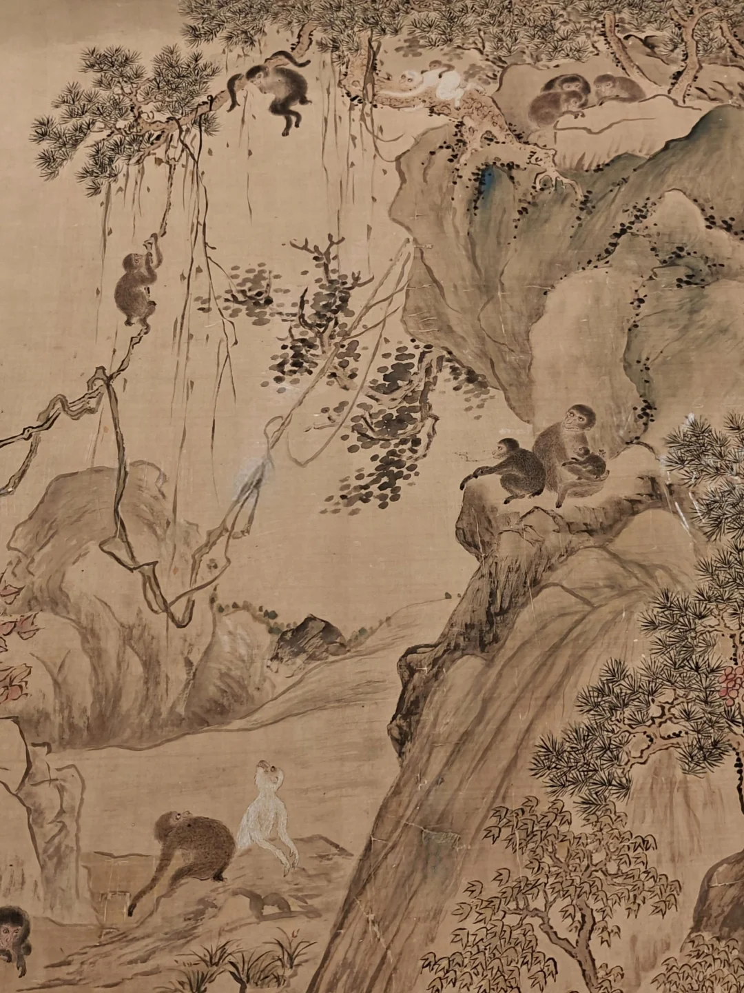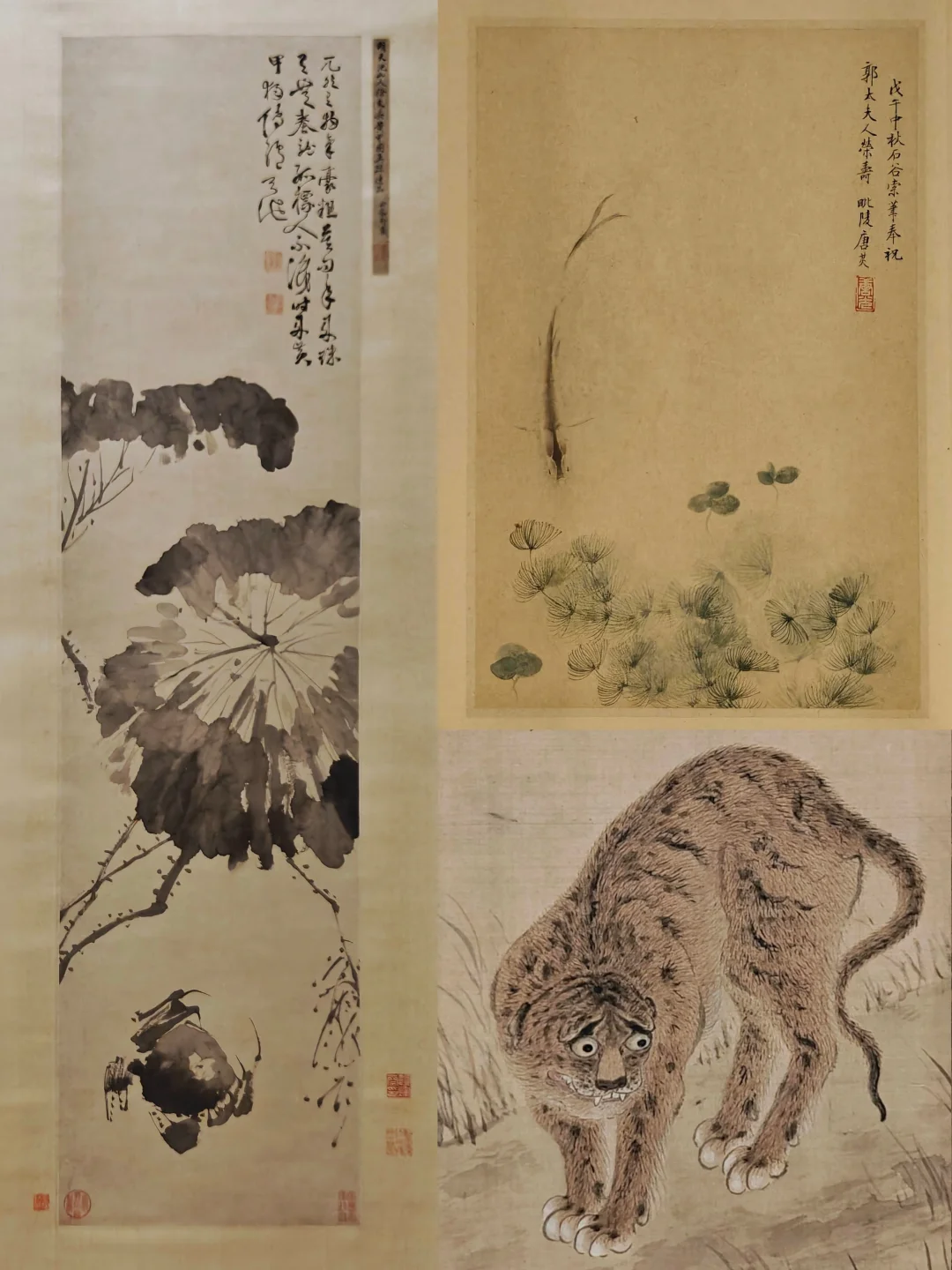 本次特展尺幅蕞大的画作,平放,拍不了全貌。画面中的动物们被描绘地生动传神,栩栩如生,一头老虎位居画面正中却面露囧态