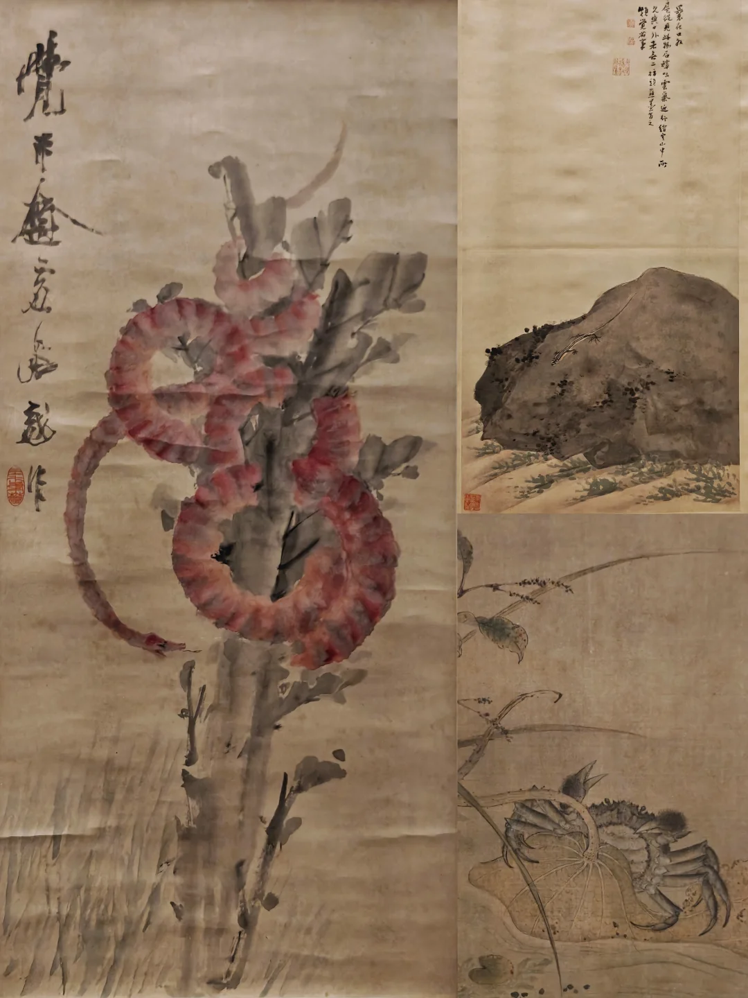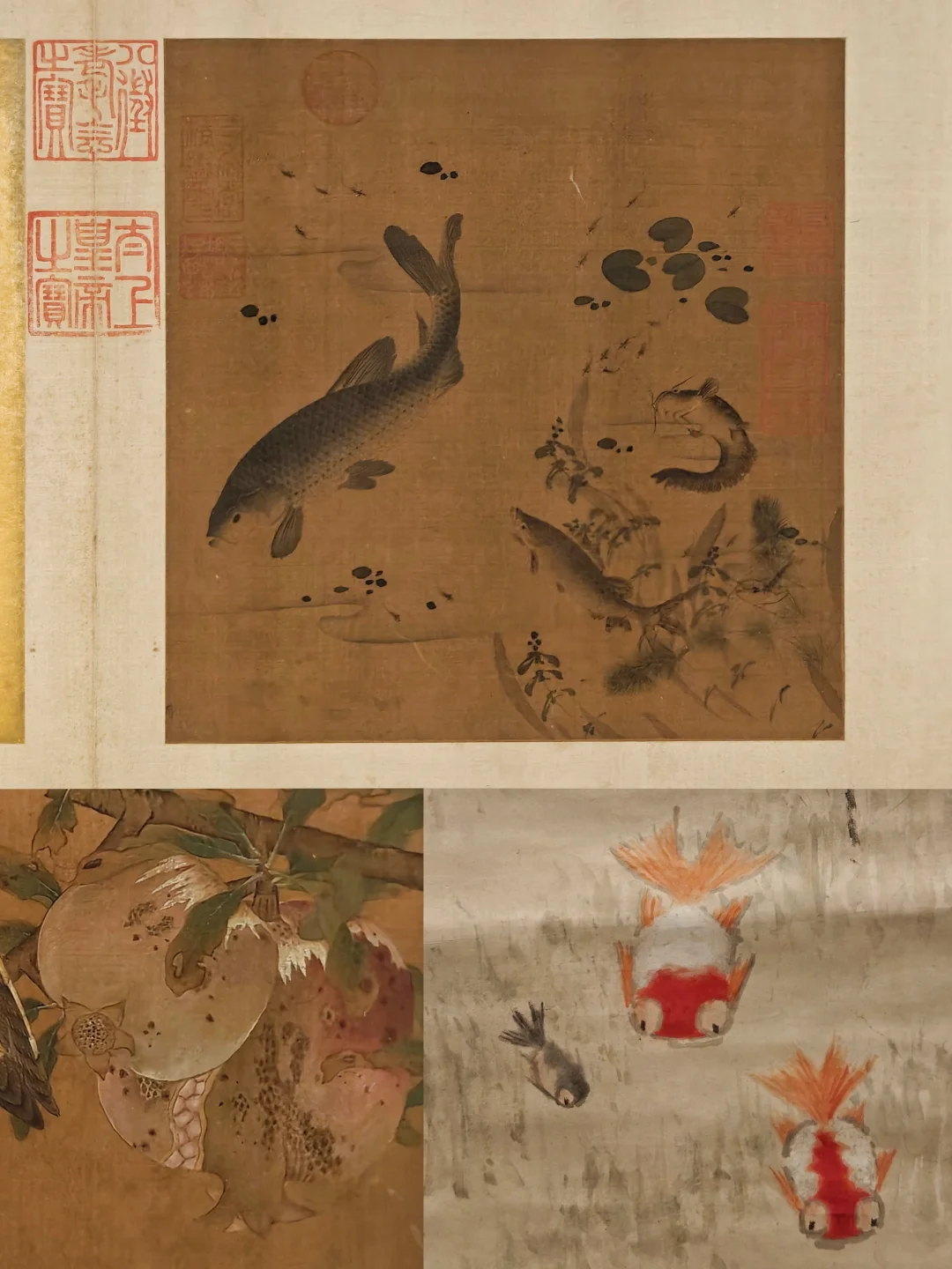 明宣宗擅画鼠,此三幅写意小品画分别绘制于纸、绢、磁青纸上,姿态不同