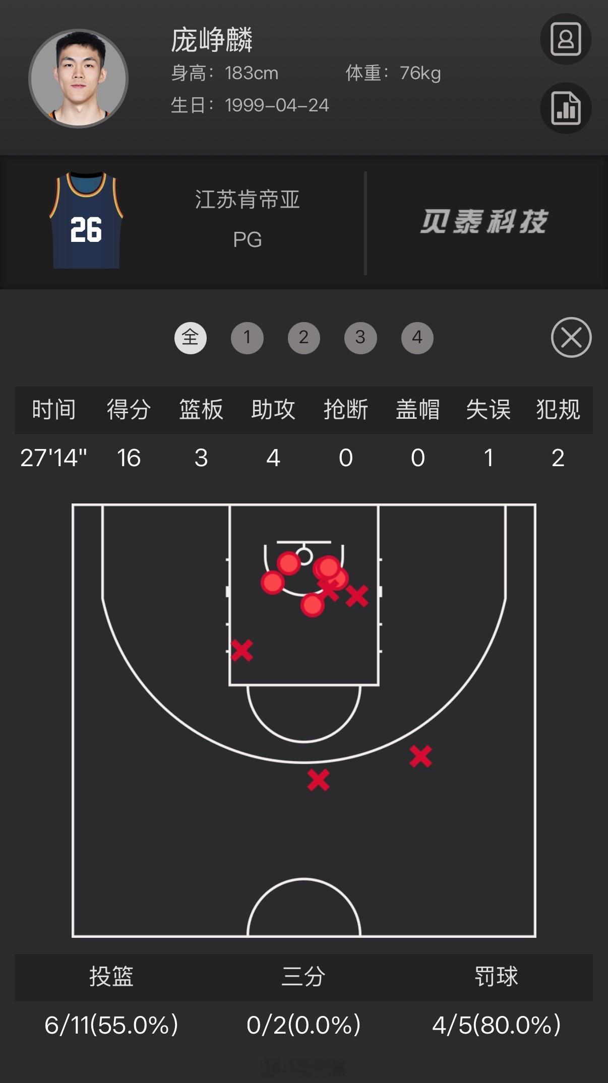 首秀16分3篮板4助攻,只有1次失误,庞峥麟在自己的CBA常规赛首秀打出令人满意的表现,江苏男篮选了个好球员。江苏男篮vs北京男篮赵睿北京男篮首秀