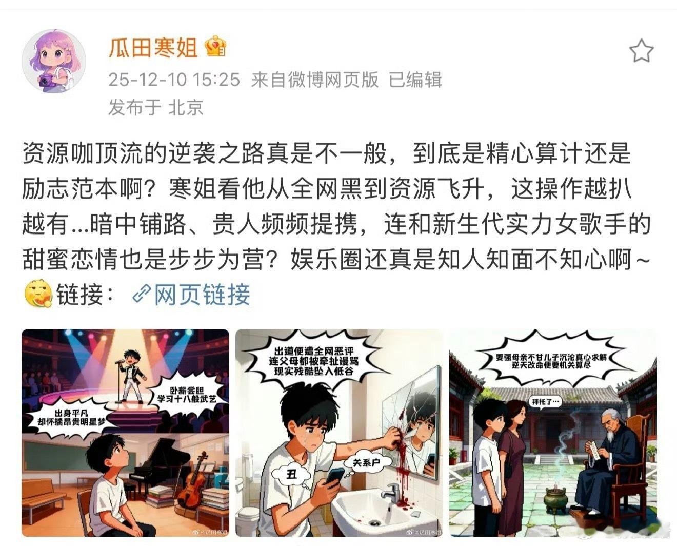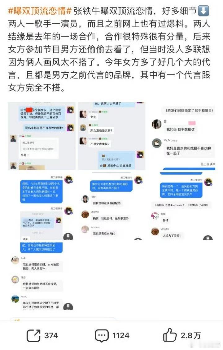 讲真,这样的新闻,在没被爆出来前,并没有很想知道这个人家双顶流的私事演员和歌手是工作,但人家的感情是私事。人都有七情六欲,人家要是都是单身,在一起了,很正常的啊哪怕真的被爆出来,除非组合的非常让人意想不到,我可能会震惊一下,要不然,真的就是雨我无瓜而且根据他说得几点“资源咖、全网黑再到全网爆、去年合作过”这几点,是觉得名单里的人都没有符合的啊所以还是静待人家自己官宣吧,如果人家愿意的话。曝双顶流一演员一歌手曝双顶流一演员一歌手