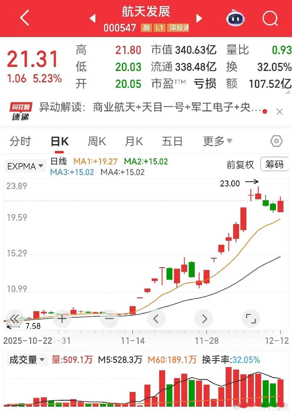 航天动力icon,航天发展,华菱线缆icon。航天线路里面强势的较多,各领风骚好几天,开始看发展,现在看动力,还有那个顺灏,到底哪一个是王者,至今难分伯仲。航天发展,虽然这几天并不抢眼,但是休整之后,未必颓废。航天动力,十七天十五阳七板的大喜局面,已经得到市场认可,最近九连阳,可喜可贺,但是这里提醒一下,高处不胜寒。华菱线缆,用一字板反包苍蝇拍,消息刺激成分大,还有几个一字不好说,哪一天打开一字板,也许就是最后的晚餐。特别提醒:贴图欣赏,并非推荐,据此操作,风险自担。✦✦✦本人仅此一号,无微信群,无公众号,不主动加人,主动加人者是骗子。请提高警惕,否则损失自负。✦✦✦