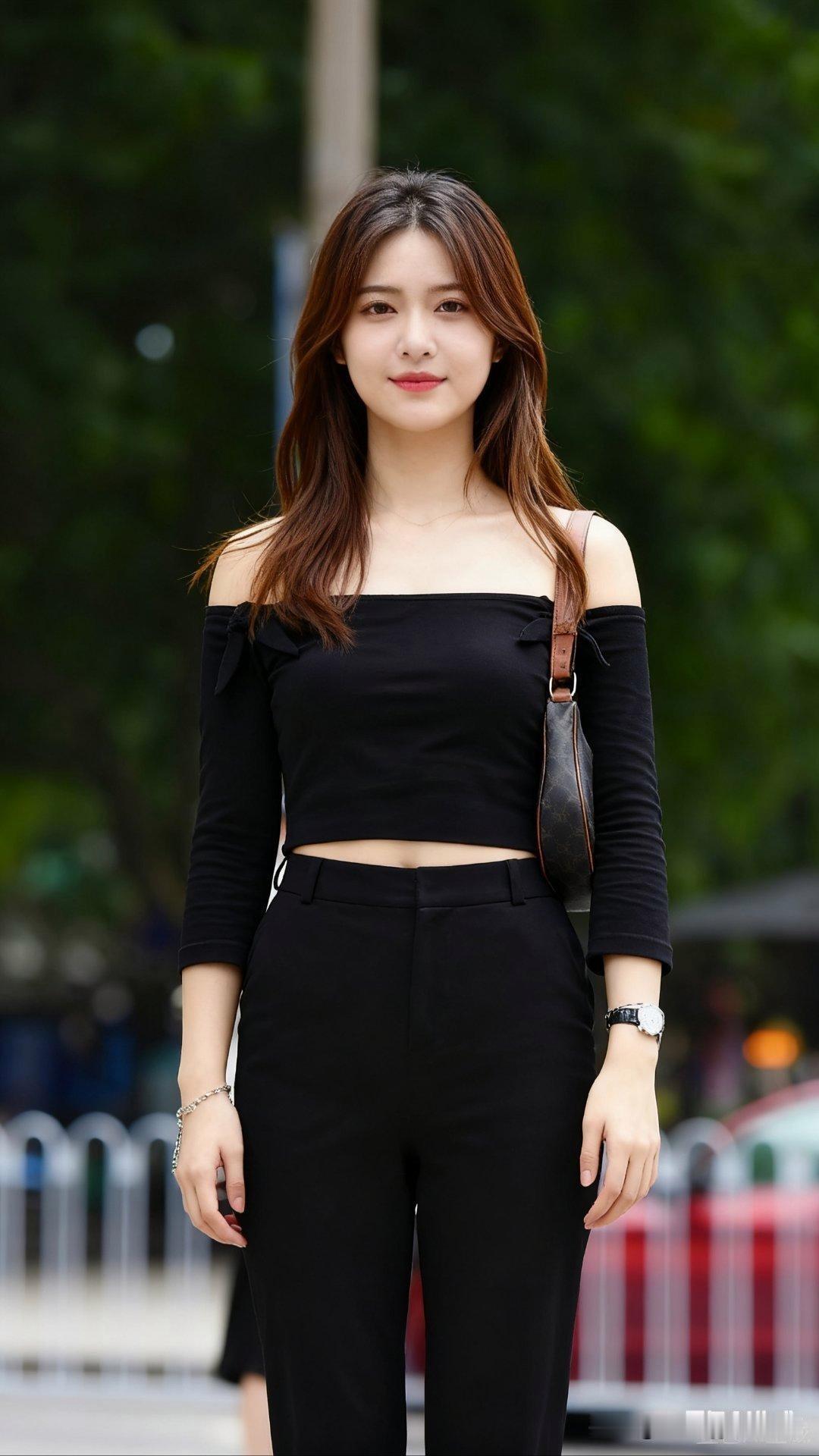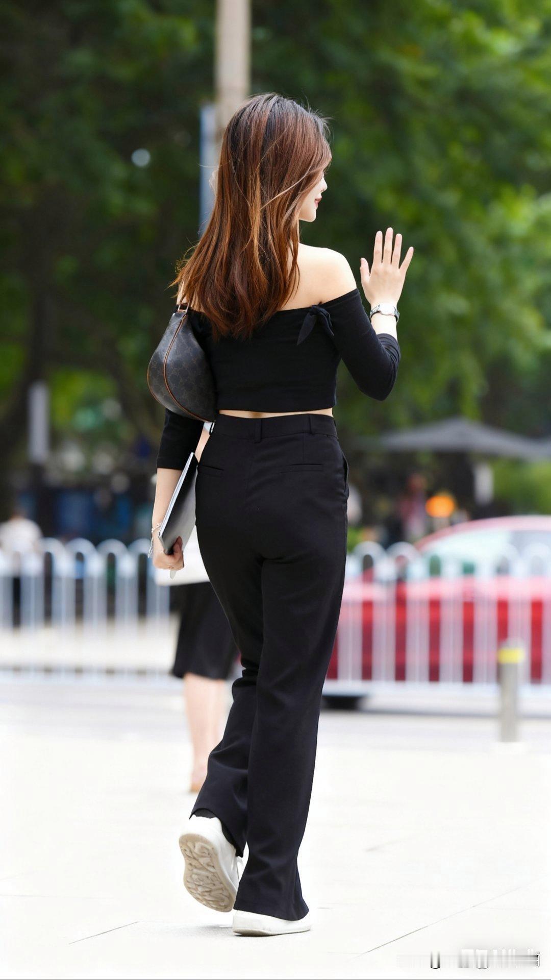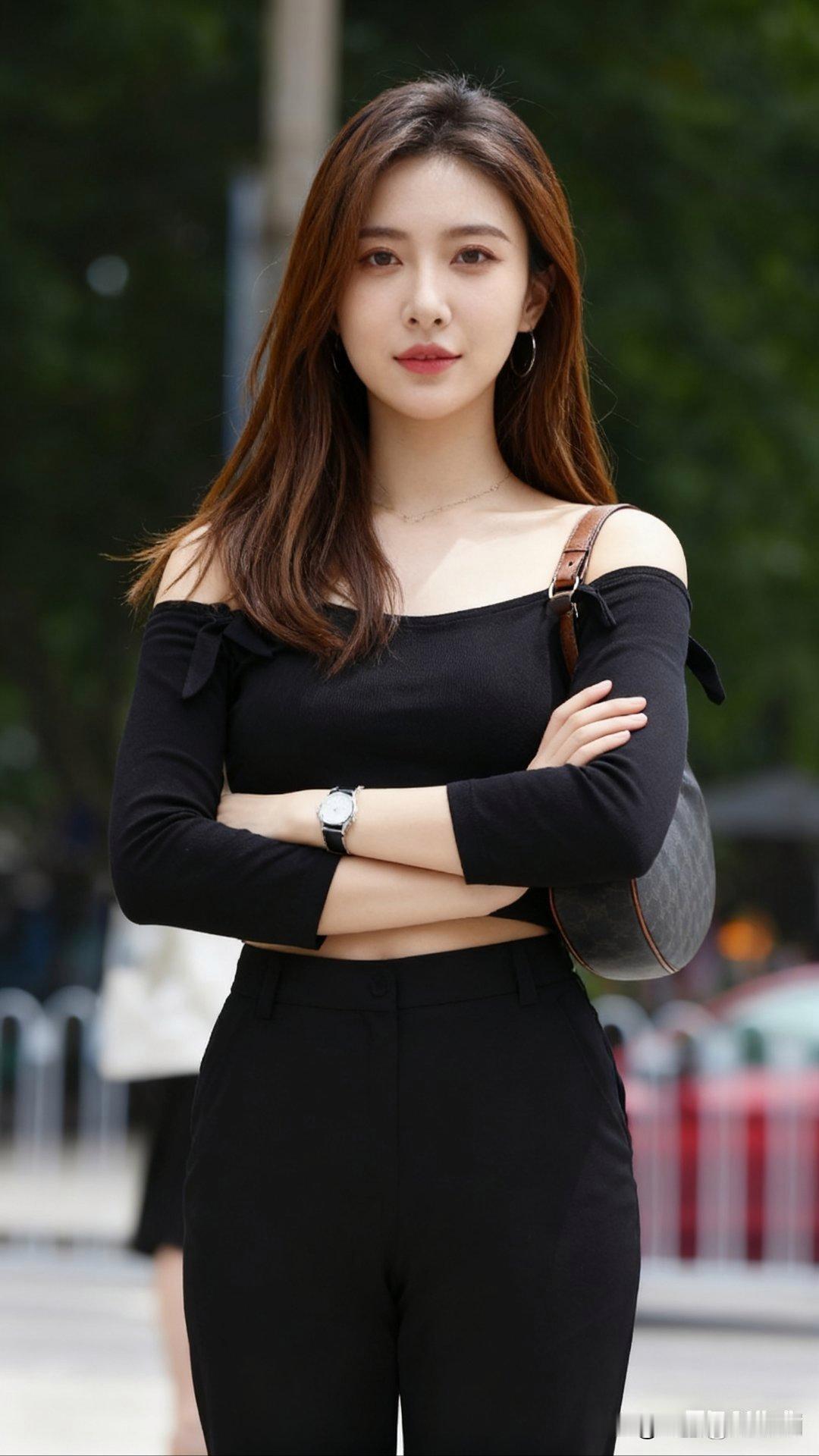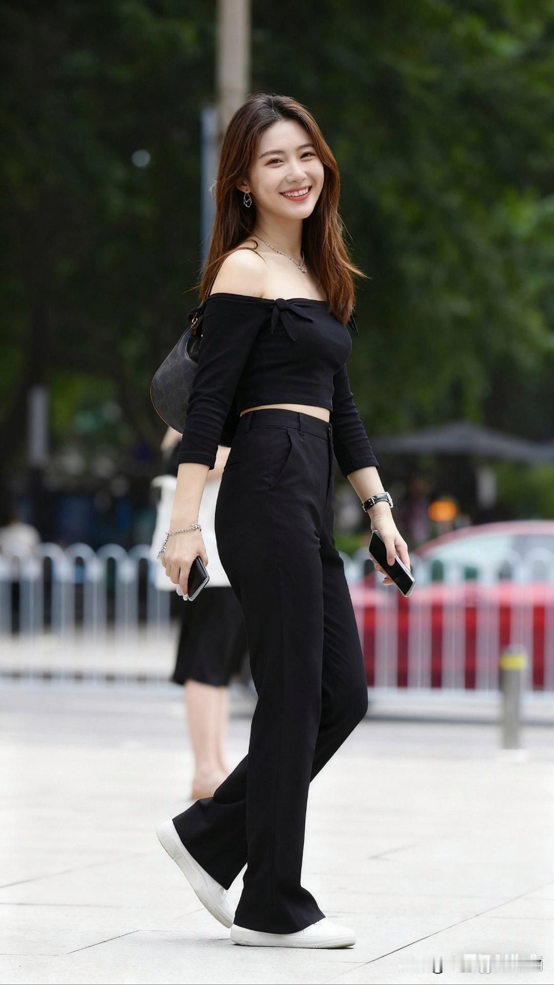 都市女孩的时尚穿搭里,黑色露肩上衣搭配紧身裤简直绝了!就像这件黑色单侧露肩上衣,露出一截锁骨和肩头,性感又不过分暴露,宽松袖型还能遮肉显瘦。短款版型搭配高腰紧身裤,轻松穿出“三七分”比例,小个子女神也能有超模既视感。 经典的“黑白配”永远不会出错,高腰紧身裤衬出完美腰臀比。再配上温柔的灰色单鞋,低跟走路不累,日常通勤、约会逛街都合适。黑色菱格包和精致耳环点缀,让整体造型精致又性感,自信满满出街!