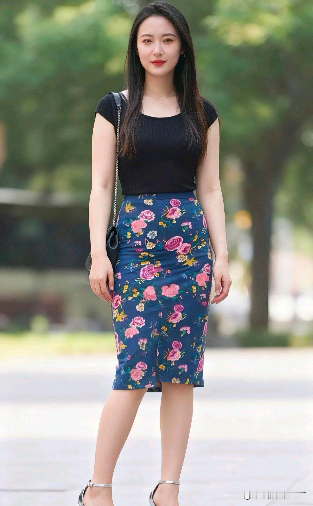 夏日清新穿搭,黑色上衣配印花裙简直是绝配! 黑色T恤就像一张底片,选对款式很重要。做旧的微微泛灰的黑T恤自带滤镜,搭配水洗牛仔或迷彩工装裤很出片;领口也能决定“人设”,大方领配锁骨链有法式漫不经心的感觉。 印花裙的选择也多样,浓郁色彩的印花半裙搭配黑色T恤,有复古电影感,显瘦效果佳。比如黑色T恤配绿色印花长裙,田园风随性自然又小清新。当黑色上衣与印花裙组合在一起,轻松营造出优雅氛围,让你在夏天成为不费力的“女主角”。