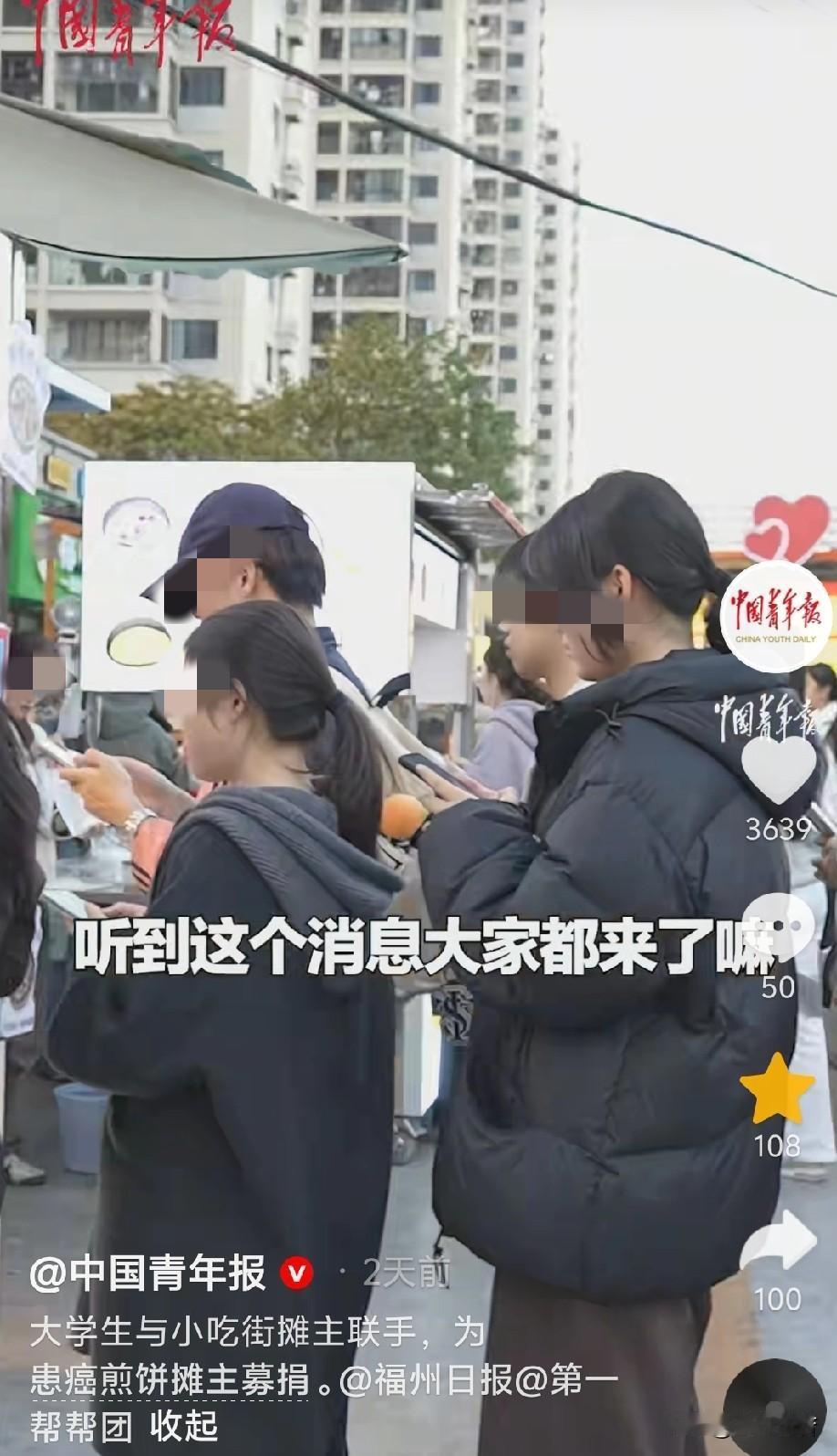 一条小吃街上摊主们,齐刷刷地把自家的收款码,全都换成了同一个人的。对于他们的举动,你是不是也觉得很奇怪?他们为啥要这么做?而这个人又是谁呢? 近日,福州,几名福建师范大学旗山校区的学生去买鲜肉饼,发现出摊的大叔不见了,摊位上换了别人。大叔买的鲜肉饼,5块钱一个,馅料特别足,学生们都爱吃,亲切地称呼他“煎饼叔叔”。 大叔的身影一直没有出现了,直到12月9日,有一位同学在网上看到了一则“煎饼叔叔”筹款的信息,这才知道他得了癌症,而且已经晚期,急需50万的救命钱。这笔钱对于大叔一家来说,简直是天文数字。 大叔是家里的顶梁柱,家里还有两个上学的孩子。大叔病了,不仅没法摆摊赚钱了,巨额的医疗费更是雪上加霜。生活让善良、努力的大叔束手无策,日子陷入了困境。 现在好了,大叔的难处被大伙儿看见了。大叔筹款的消息,就在周边的福建师大、福建理工大这些学校传开了。同学们你十块、我二十地进行捐款。 如果学生们的线上捐款,是爱心的第一波暖流,那接下来的温暖,则是从线上传递到了线下,变成了一场爱心接力赛。 12月10日,小吃街上的摊主们听说了大叔的遭遇,很多商户都把自家的收款码,换成了大叔的。他们还特意贴出告示“今日所有营业额全部捐给‘煎饼大叔’”、“前一百名买芋泥饼的收款,全部转给‘煎饼大叔’…… 大伙儿看看,在这样一条充满了烟火气的小吃街,虽然他们素不相识,甚至还是竞争对手,但是此刻他们用着同一个二维码,有着共同的心愿,帮“煎饼大叔”多凑一些,他的生命线就能得到延长的可能。 “煎饼大叔”的事迹被报道之后,更多的陌生网友也加入到这场爱心接力赛,进行网上捐助。他们有人笑称吃了一份电子煎饼。短两天时间,大叔就收到了5万多元的捐款。 躺在病床上的大叔和妻子看着手机里,不断闪烁的捐款提示,和很多温暖的留言,夫妻俩一次次忍不住感动落泪。 这则福建师范大学门口摊主与学生为患癌煎饼大叔募捐的事迹,满是普通人之间的温情和善意,让人感受到了市井里的温暖力量。 周边摊主主动更换收款码,将当日营业额全数捐赠,不是冰冷冷的施舍,而是同行间“搭把手”的质朴情谊,体现了小商户之间抱团取暖的江湖义气。 学生群体的积极参与,让这份善意有了更广泛的传播和支撑,年轻人的行动力和共情,让爱心从小吃街延伸到校园,成为温暖的纽带。 村委会表示会积极行动,也让这份民间自发的善意有了基层组织的助力,让帮扶不再是零散的行为,多了一份稳妥的保障。 这件事之所以动人,是因为它没有宏大的叙事,只是普通人对身边人的体贴与扶持,印证了“人间烟火走,最抚凡人心”,也让我们看到平凡生活里,善意从来都不会缺席。(来源:中国青年报)