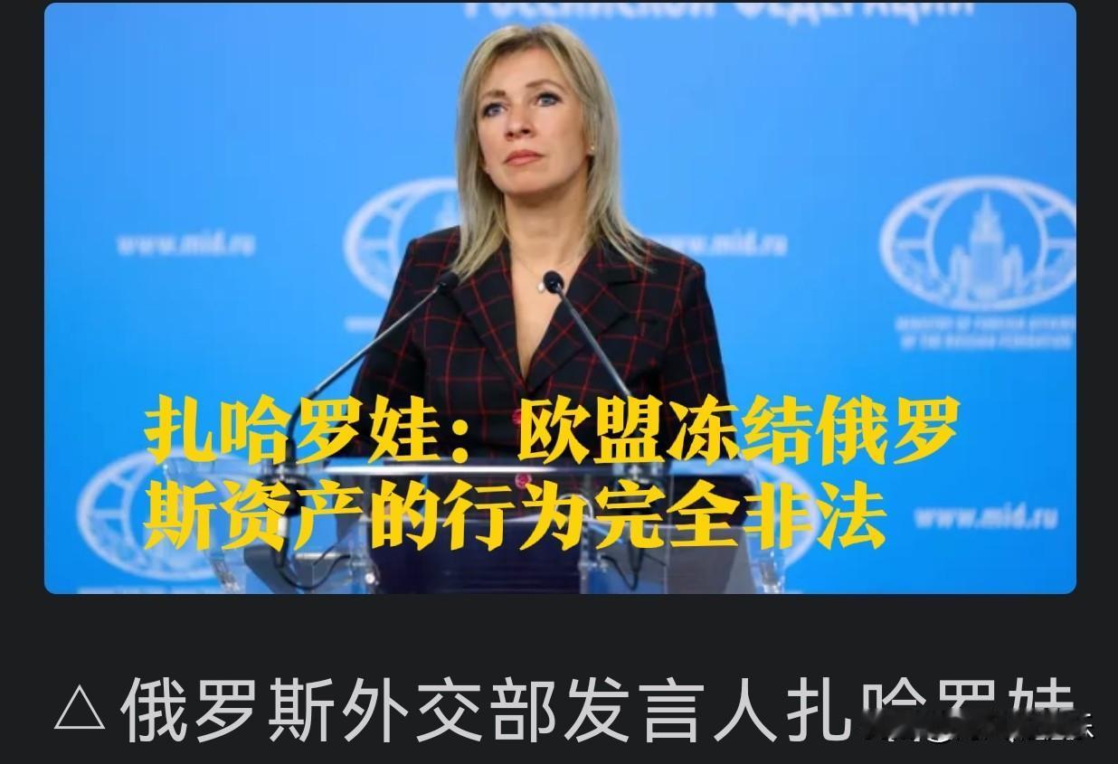 扎哈罗娃:欧盟冻结俄罗斯资产的行为完全非法 据外媒报道当地时间13日,俄罗斯外交部发言人扎哈罗娃针对欧盟继续冻结俄罗斯资产一事发表评论称,在未经俄罗斯联邦同意的情况下,处置其主权资产是完全非法的行为,严重违反了国际法准则。 扎哈罗娃强调,欧盟的行为给其金融体系以及贸易、投资声誉所带来的损害将是无法弥补的,必将产生严重后果。 欧盟轮值主席国丹麦12日宣布,欧盟同意无限期冻结俄罗斯央行在欧洲的资产。比利时、保加利亚、马耳他和意大利发布联合声明,称他们在12日的欧盟程序中投票赞成长期冻结俄罗斯资产,但是否利用俄罗斯冻结资产援助乌克兰的决定需要在欧盟峰会上做出。
