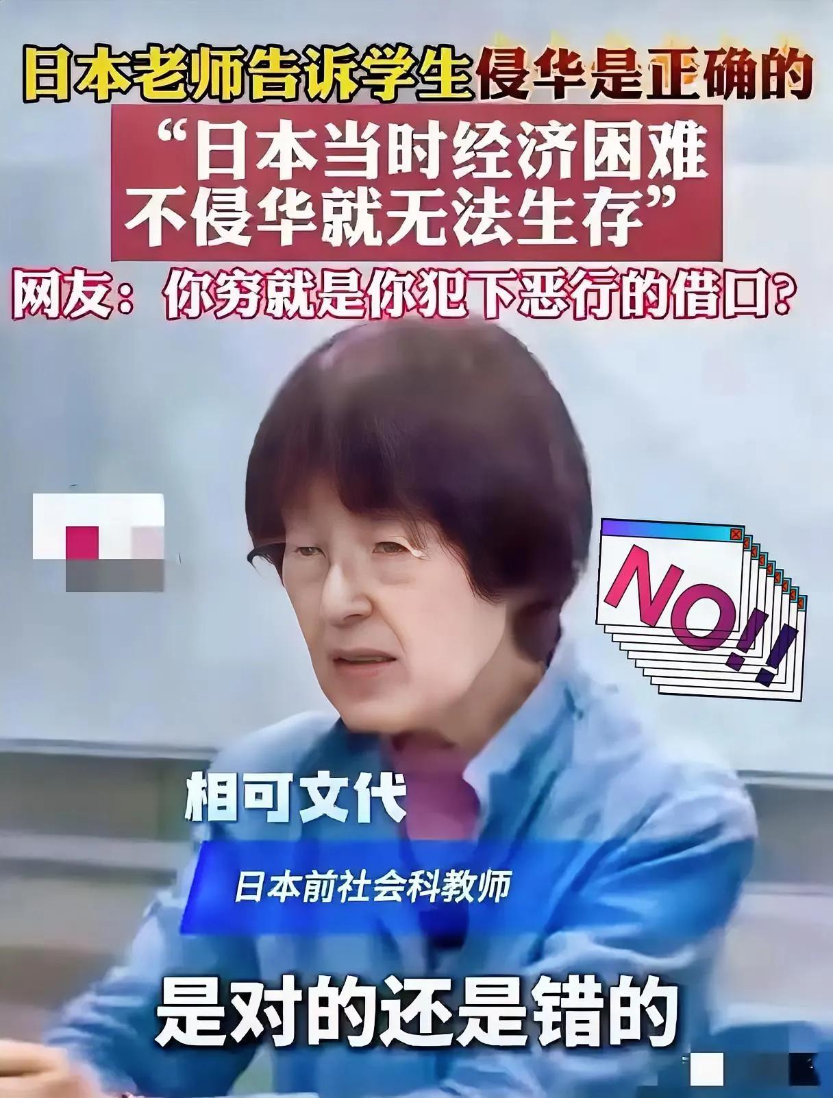 一位老师在课堂上 对学生说的这番话 去邻居家烧杀抢掠,是因为我们家太穷,活不下去了,这是求生本能,我们没错! 看到日本一位老师在课堂上对学生说的这番话,真的脊背发凉! 她竟然把侵华战争的血腥暴行,轻飘飘包装成“经济自救”,把赤裸裸的掠夺粉饰成“求生的无奈”。这哪里是反思历史?分明是在给强盗逻辑续命,是在教唆下一代遗忘罪恶! 侵华战争给中国人民带来的苦难,是刻在民族骨血里的伤疤——南京大屠杀的哀嚎、731部队的暴行、无数家庭的破碎,哪一件不是铁证如山的反人类罪行? 最可怕的从不是历史本身,而是有人刻意抹去历史、美化罪恶。当丛林法则被包装成“生存之道”,当屠刀被粉饰成“自救工具”,这种集体性的自我催眠,只会让文明的外衣变得不堪一击。 这种歪曲历史的教育,值得每一个爱好和平的人警惕!