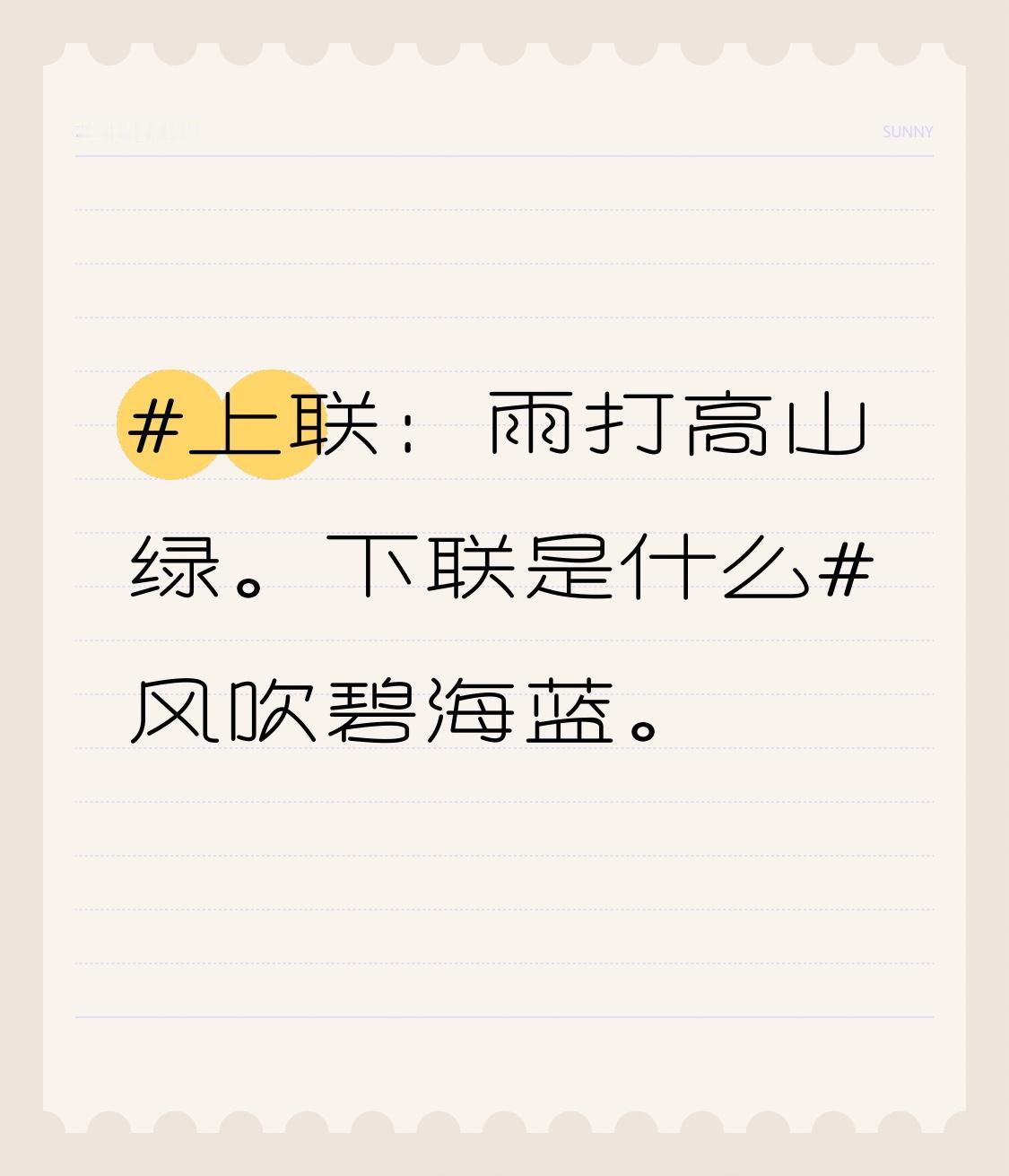 上联:雨打高山绿。下联是什么风吹碧海蓝。