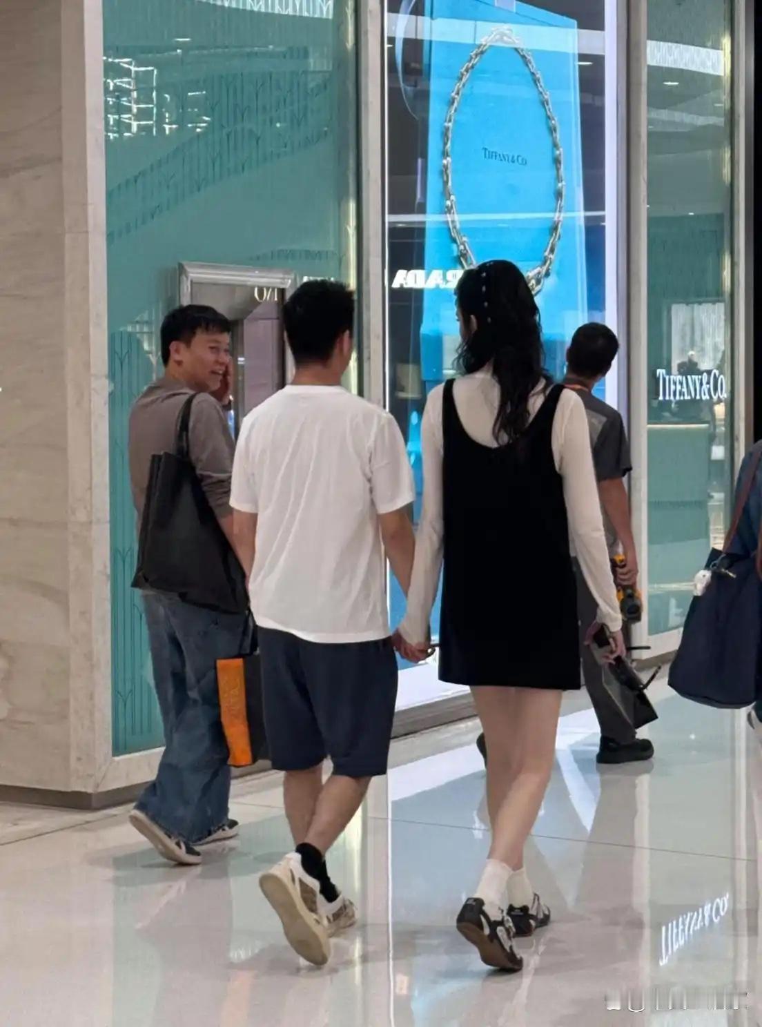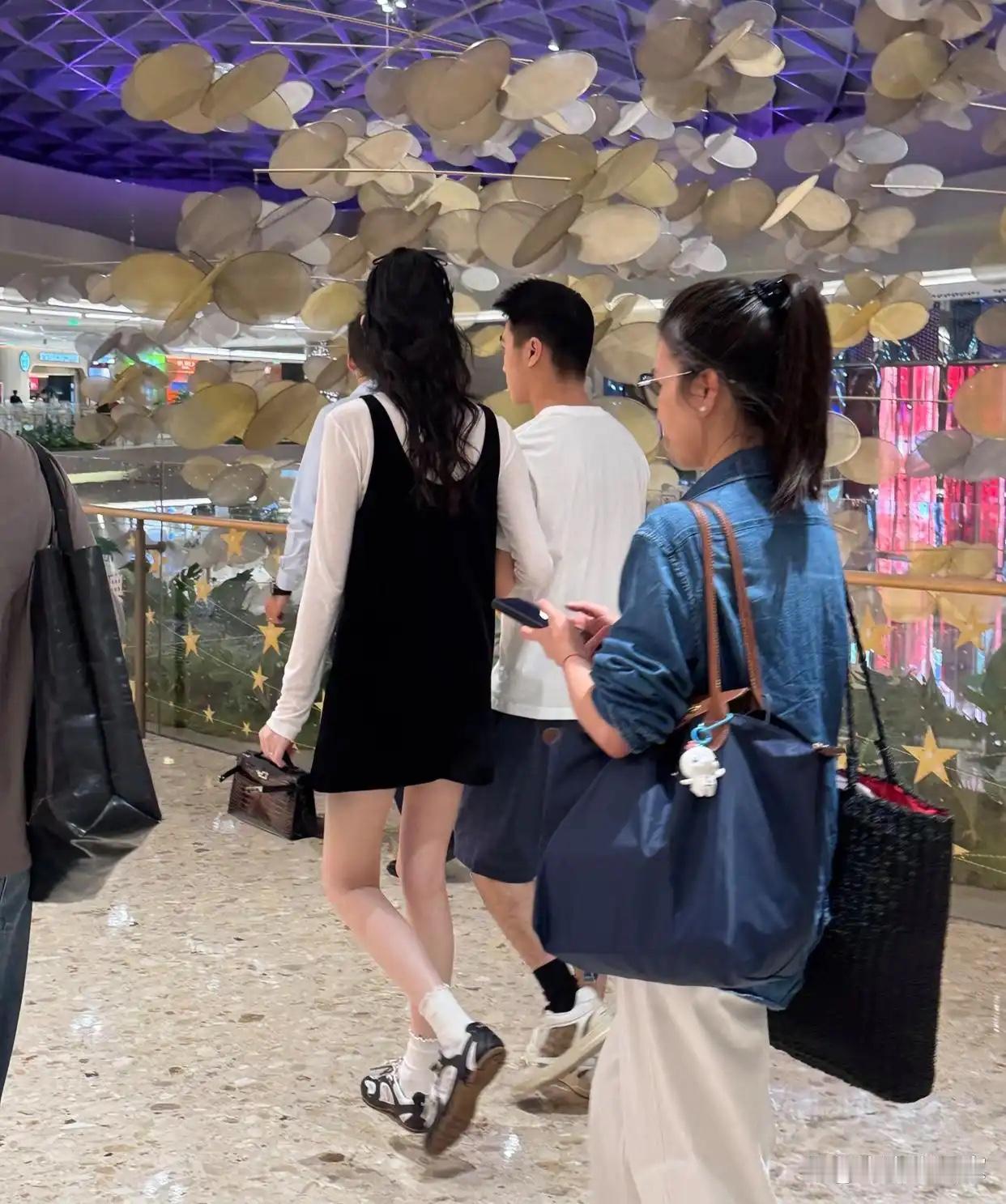 36岁奚梦瑶和老公、婆婆三亚逛免税店!穿连衣裙秀纤细美腿,打扮像少女