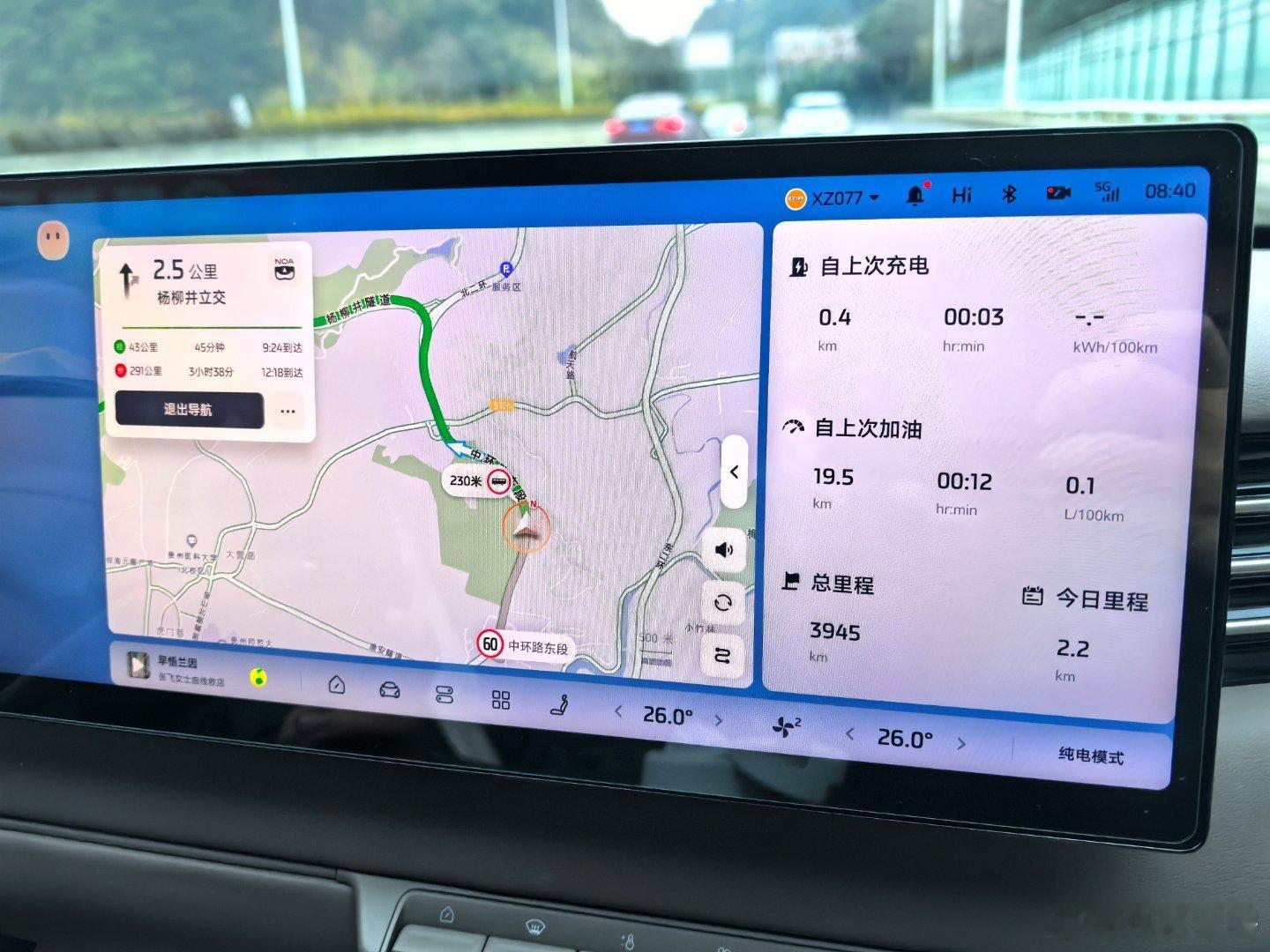 纯电续航445,室外温度1度,车内26度2档风,胎压2.5,动能回收标准,3个人+一车设备,纯电能跑多少?猜猜看