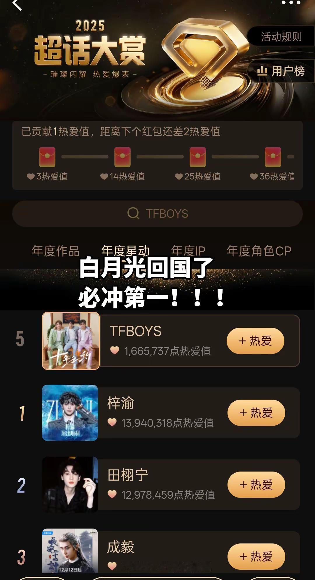 顶级男团过气? 他们的粉丝早就不在乎了。 真正在微博超话厮杀的是另一个物种——「网络军团」。 你以为是饭圈狂欢,他们视作战术演练。 2023超话大赏,TFBOYS话题三次狙击热搜榜首。 成员各自发展,粉丝却在切割后的流量版图上,用统一话术和秒跟指令,筑起新的数字城墙。 “帝国崛起”不是口号,是行动代码。 “开团秒跟”四字背后,是秒级响应的指挥链、批量生成的内容矩阵、精准投放的情感弹药。 当外界讨论“单飞凉凉”,这个系统正以小时为单位刷新数据,向算法证明:凝聚力可以计算,怀旧能转化为点击。 他们维护的早不止是三个名字。 而是将一场十年的集体记忆,硬生生炼成了全网最高效的情感组织模型——每个人都是传感器,也是执行单元。 在人人宣称“个体觉醒”的时代,这种强协作本身就成了反叛。 你刷到的每一个热搜,底下都藏着一套完整的作战地图。 那不只是数据,那是数百万人对秩序感、归属感和“我们仍在一起”的无声宣告。